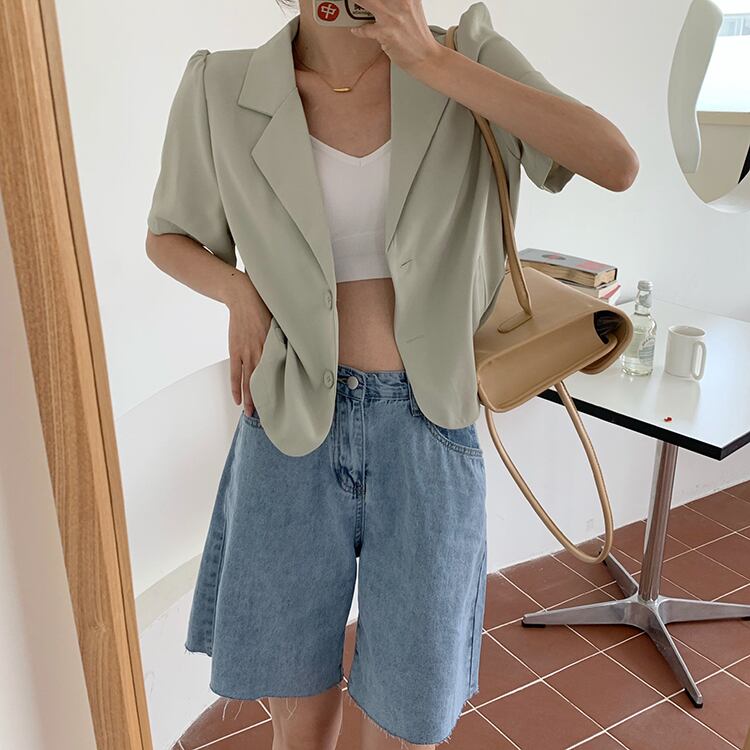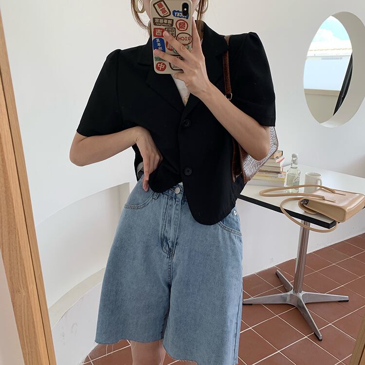 ブラックジャケット サマーカジュアルショートルーズスリーブソリッド カラー 夏物 ソリッドカラー ビッグFスモールZ韓国11951105640