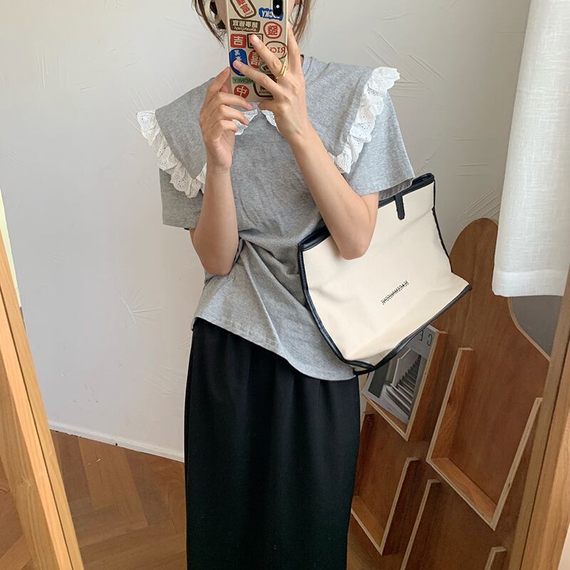 ソリッド カラーTシャツ シャツ レディースサマーカジュアルバック レッド 刺繍 夏物 ソリッドカラー ステッチ ビッグFスモールZ韓国66763939910