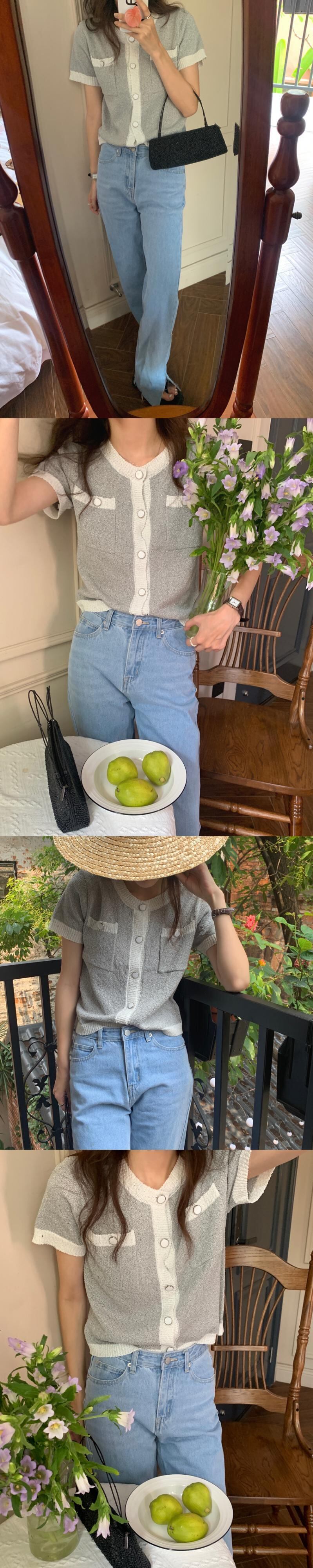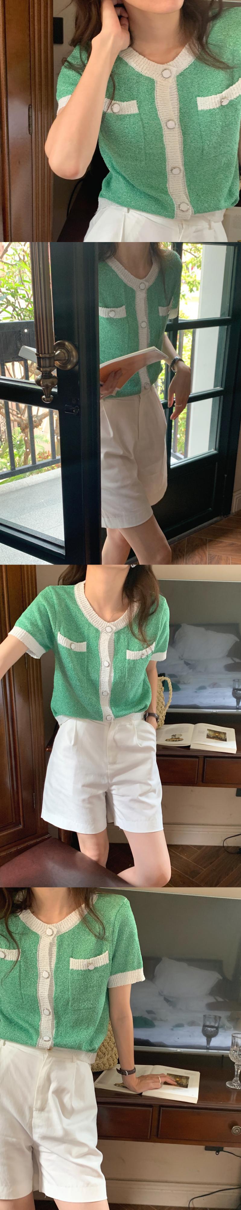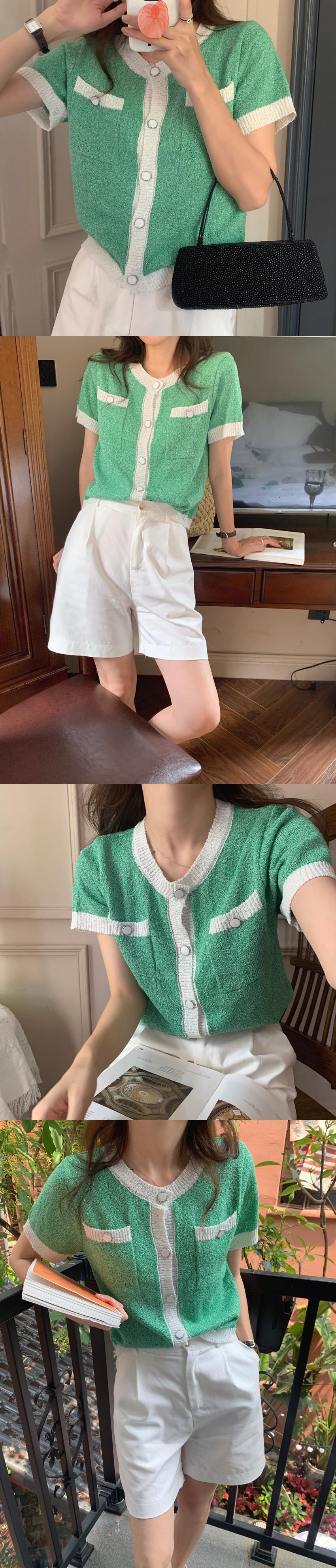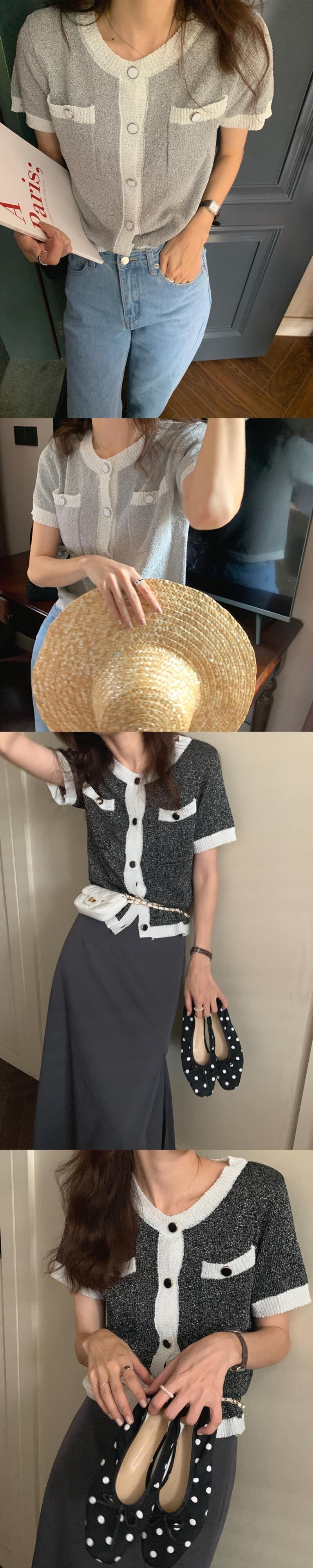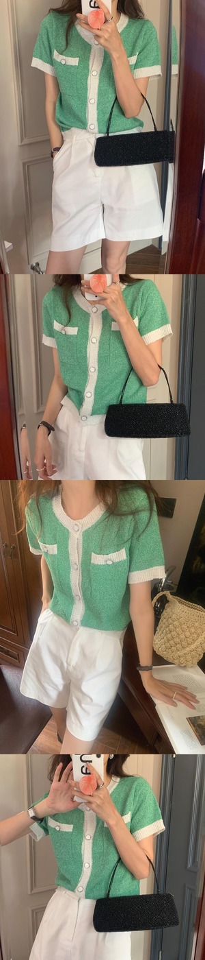 カラーショートニット サマーラウンドネック薄手カーディガン 夏物 Oネック ビッグFスモールZ韓国64200171314