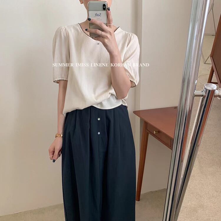 レーススリーブTシャツ サマーラウンドネック半袖トップス ショート ハーフスリーブ 夏物 Oネック ビッグFスモールZ韓国48579543783