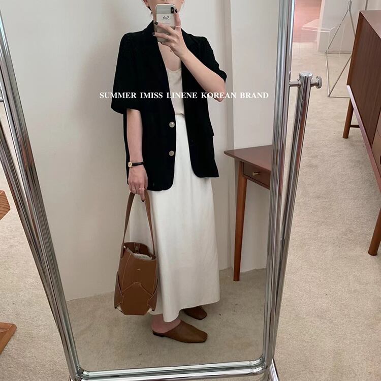 ジャケット サマースタイル薄手カジュアルロングブラック 夏物 ビッグFスモールZ韓国4691189161