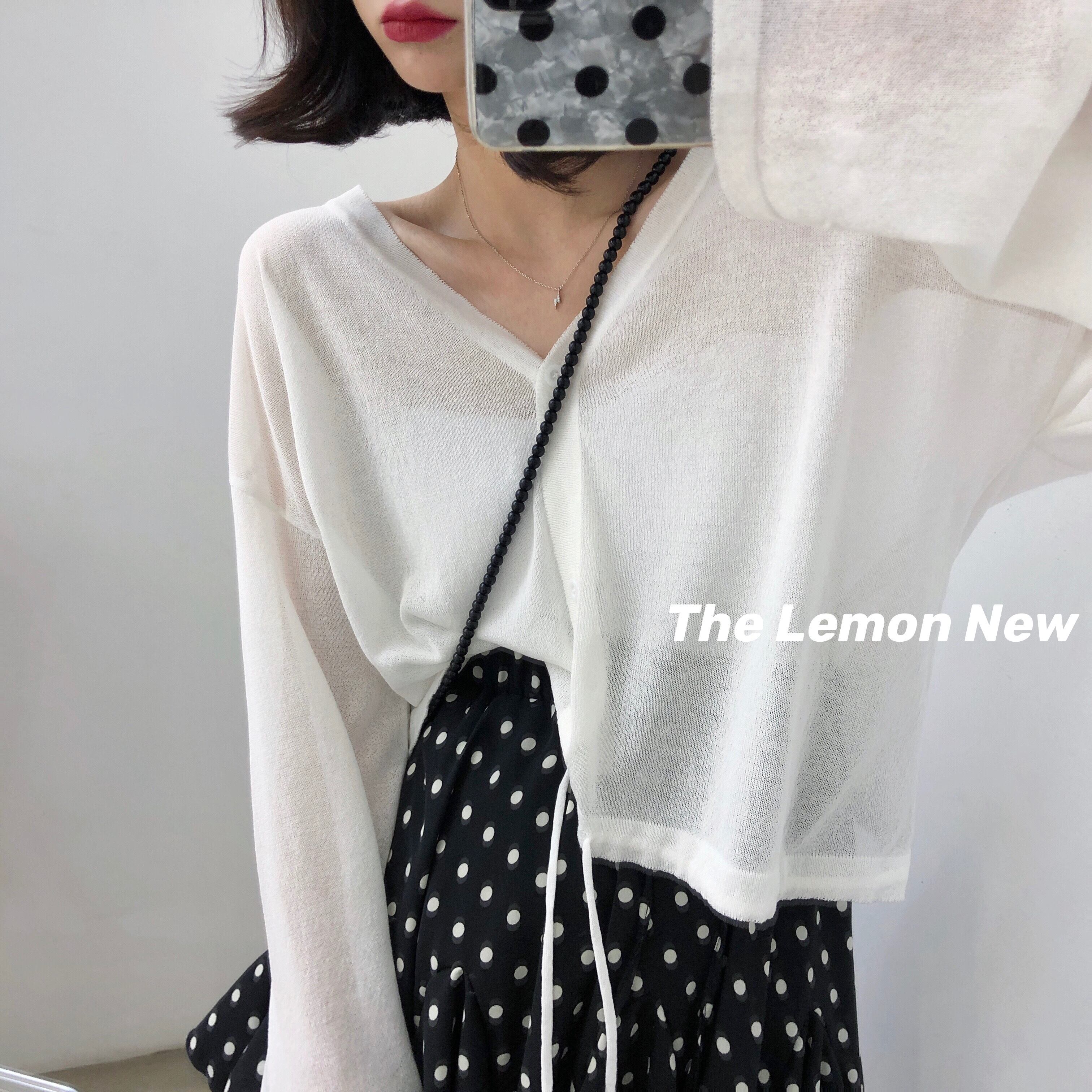 ギャザーセーター レディースサマー薄手ルーズVネックカーディガンブラウス 夏物 ビッグFスモールZ韓国24170352158