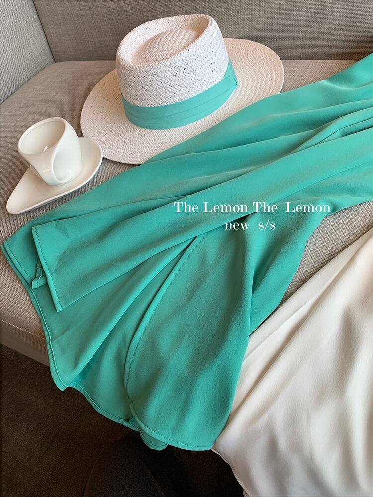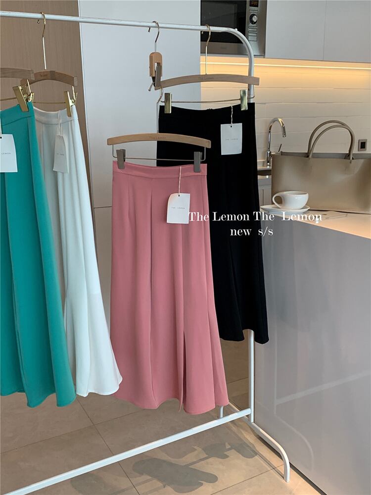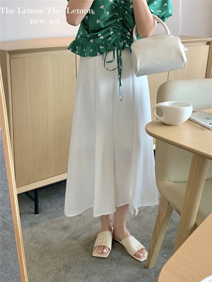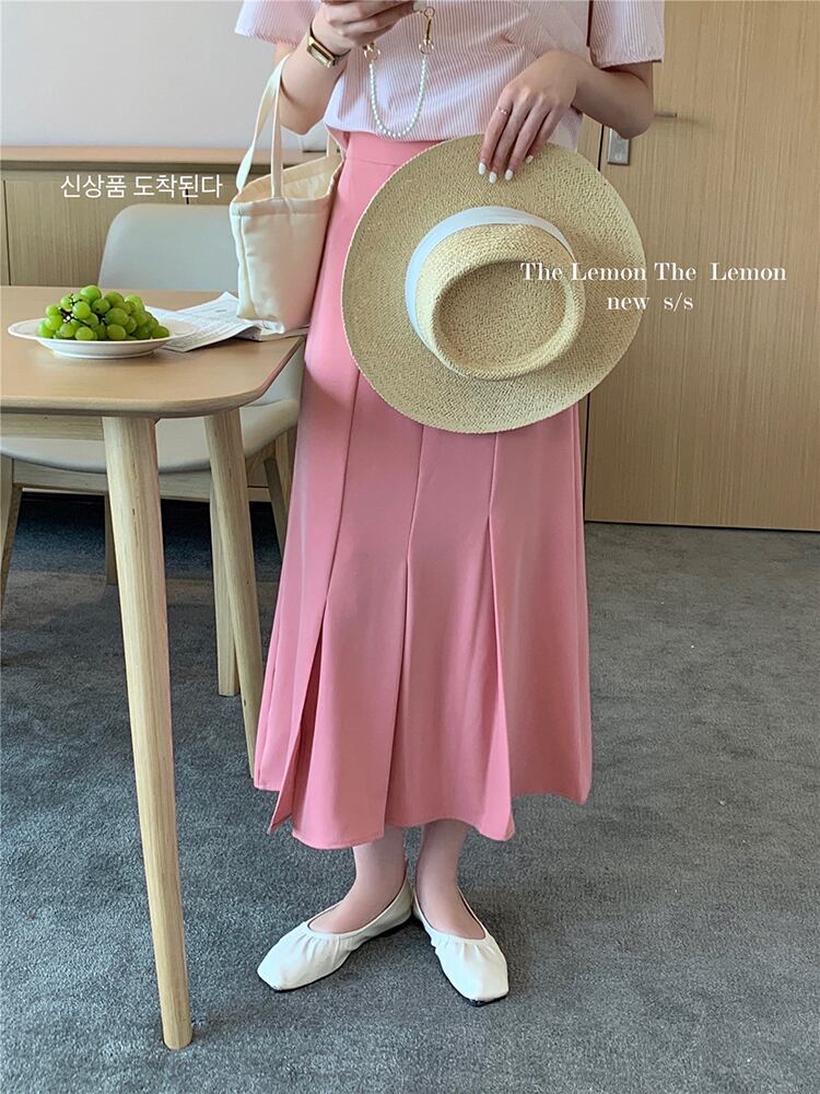 ソリッド カラープリーツスカート サマールーズ薄手カジュアルAラインロング 夏物 ソリッドカラー ビッグFスモールZ韓国49340673010