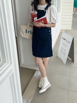 ソリッド カラーオーバーオール サマー薄手ポケットボタンドレス 夏物 ソリッドカラー ビッグFスモールZ韓国12368891050