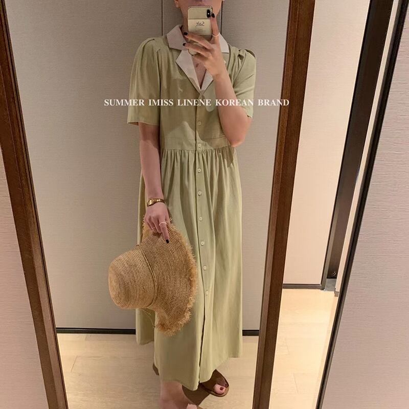 カラードレス サマースタイルプリーツハイウェスト薄手Aラインロングスカート 夏物 ビッグFスモールZ韓国7111559383