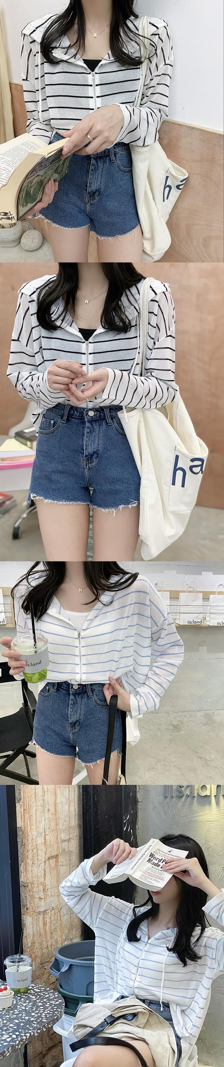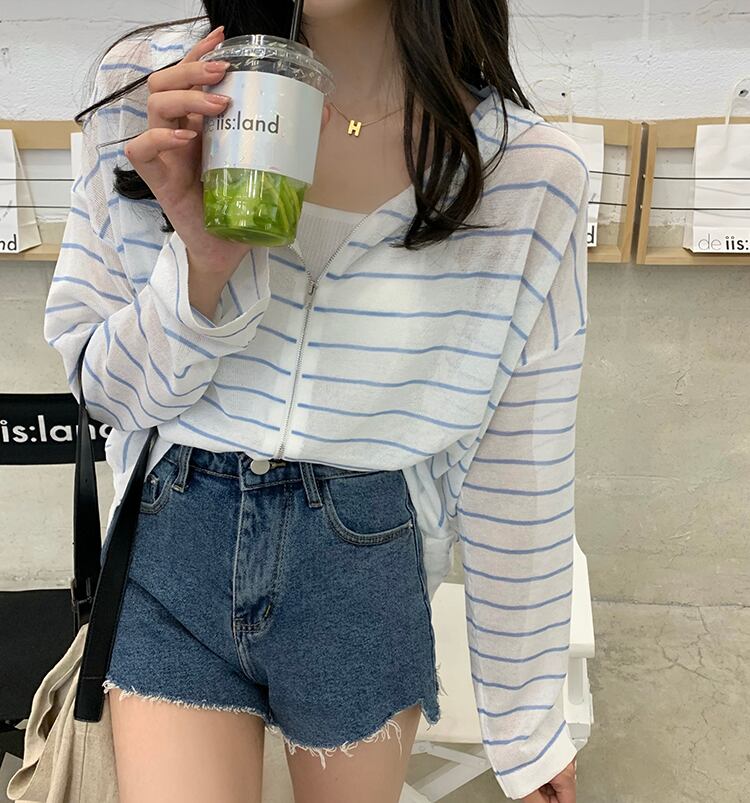 ストライプカラー薄手ジャケット サマールーズジッパートップス ロング レッド 夏物 ビッグFスモールZ韓国21992887944