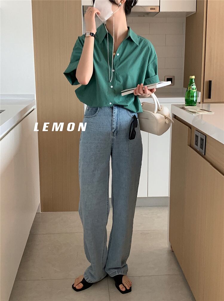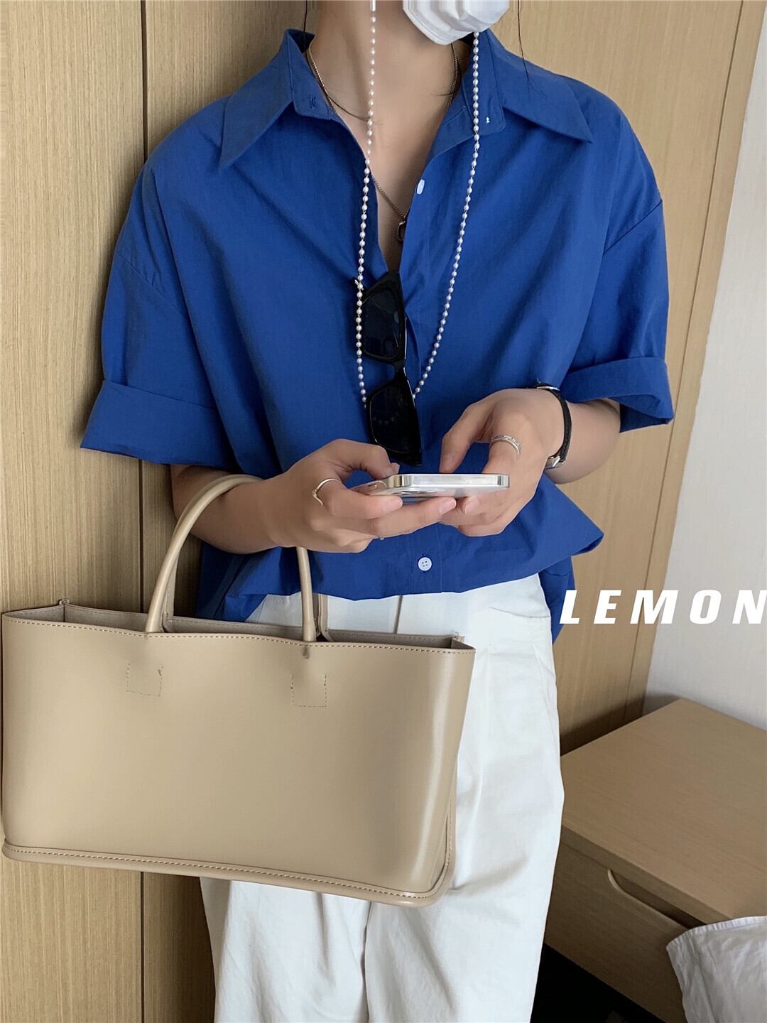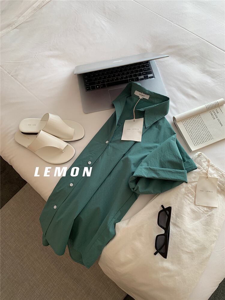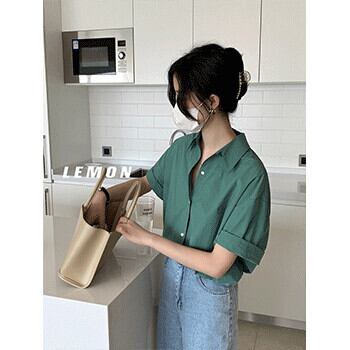 カラーソリッド シャツ サマー薄手ホワイト 夏物 ソリッドカラー ビッグFスモールZ韓国18558348033