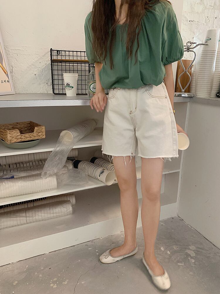 ハイウェストジーンズ サマーポケット薄手ホワイトショーツ レッド 夏物 ブルマー ビッグFスモールZ韓国50359360286