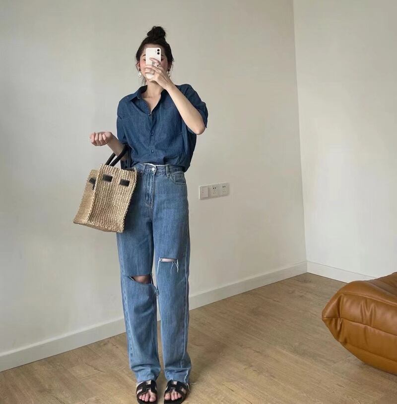 ジーンズ サマースタイルルーズウェスト薄手パンツ 夏物 ビッグFスモールZ韓国91181795689