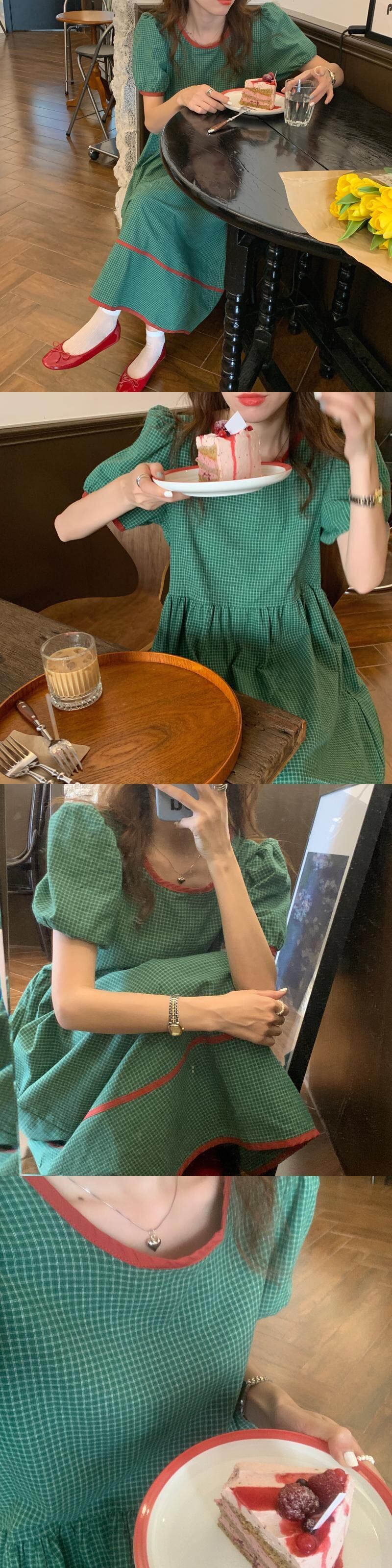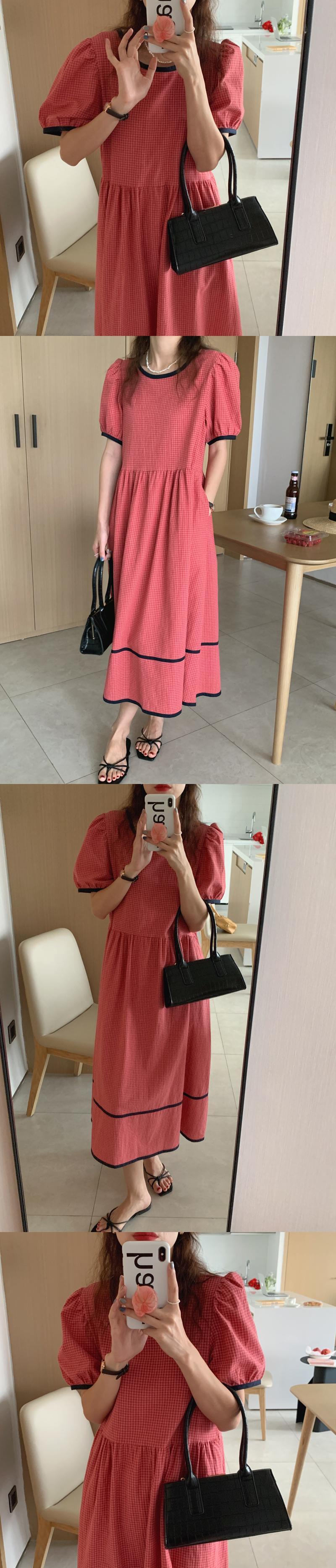 格子柄Aラインスカート ドレス サマーラウンドネック半袖スリーブルーズ薄手カラー ショート ハーフスリーブ 夏物 Oネック ビッグFスモールZ韓国16182660739
