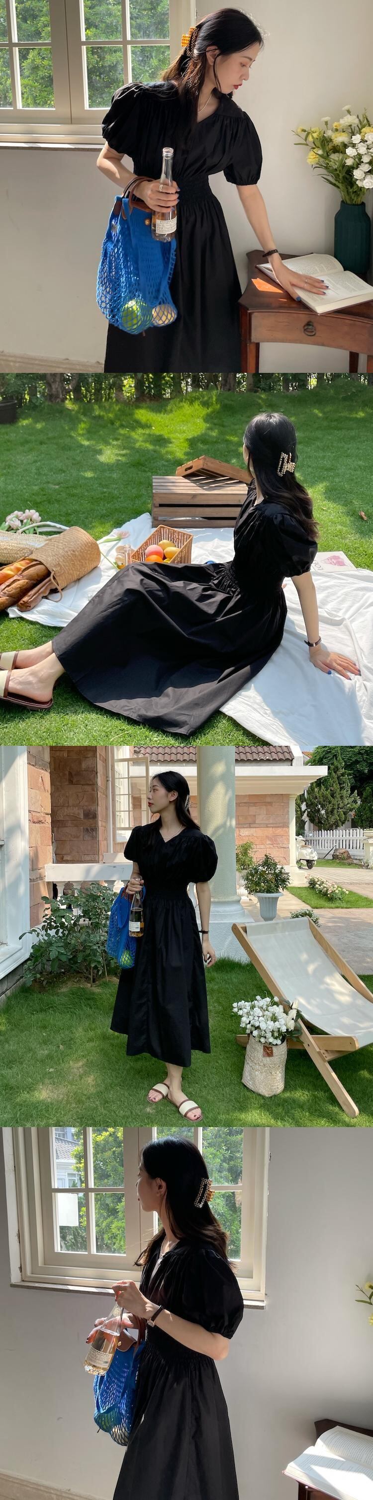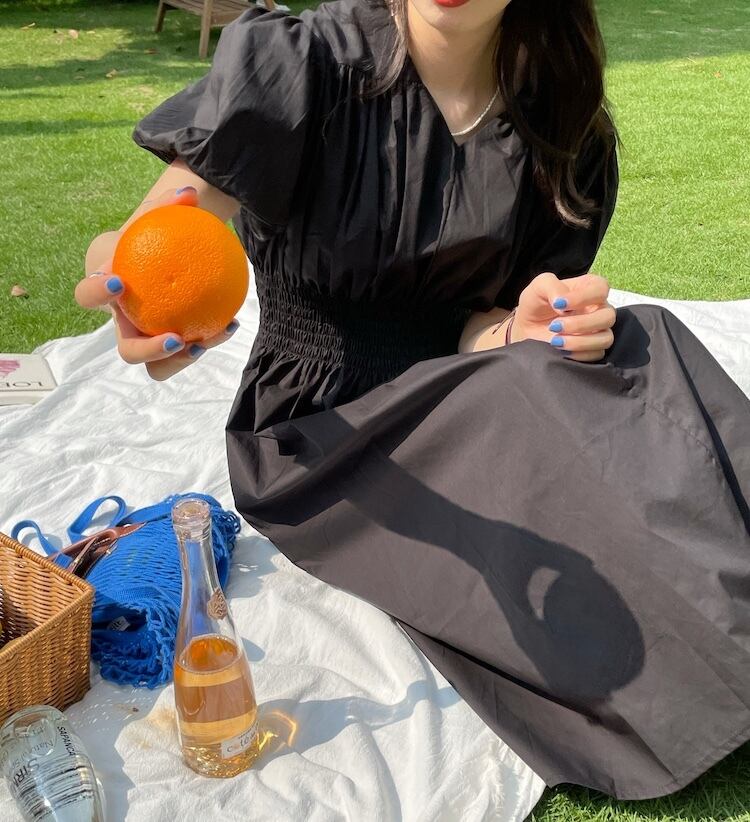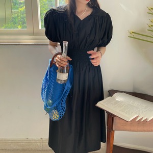 カラーウェストソリッド ドレス サマースタイルスリーブAラインロングスカート 夏物 ソリッドカラー ビッグFスモールZ韓国49808580014