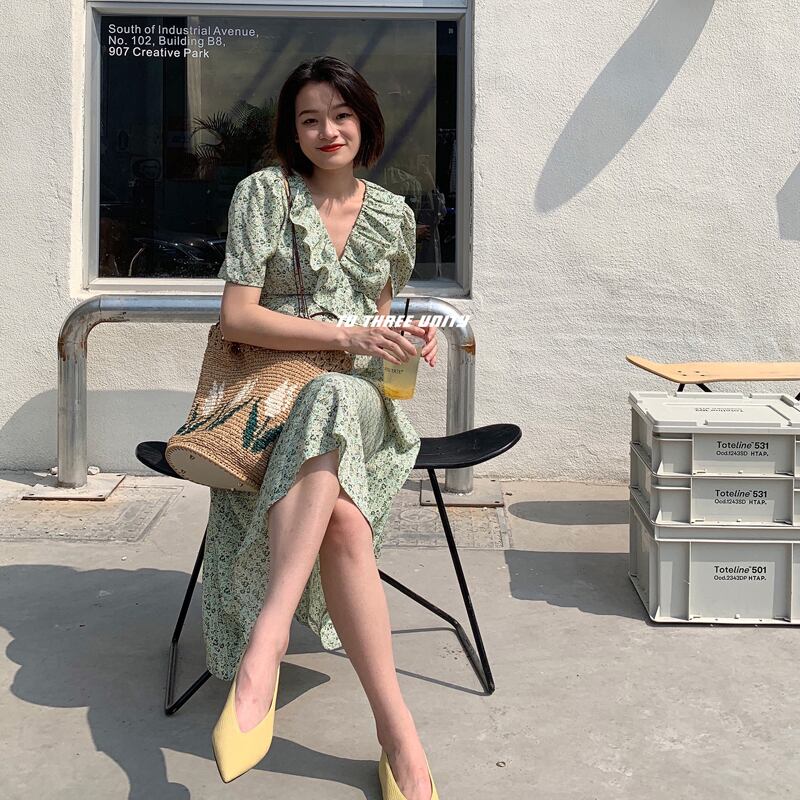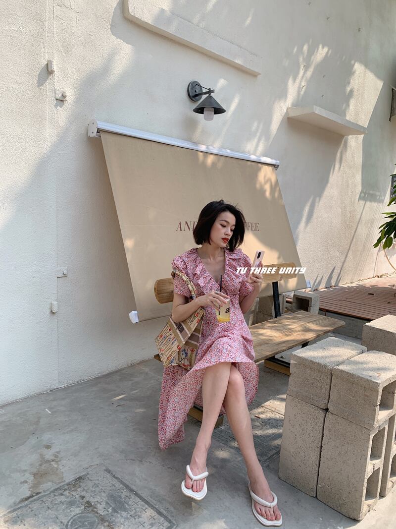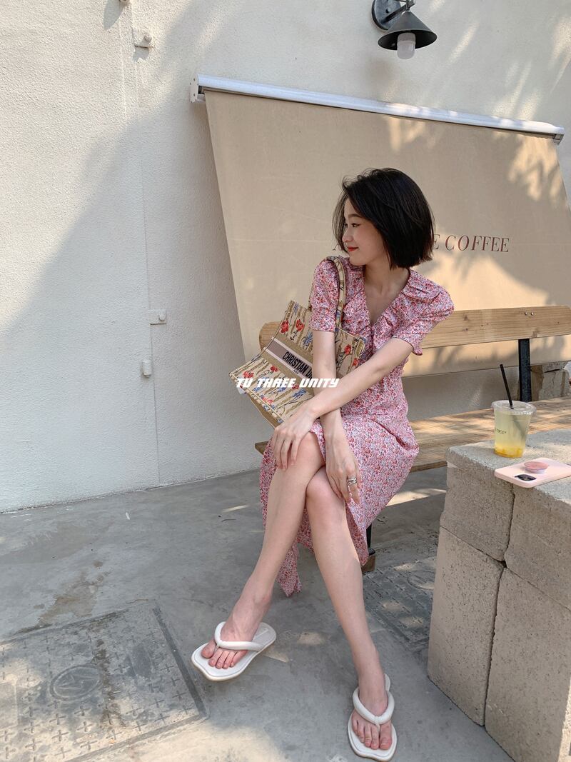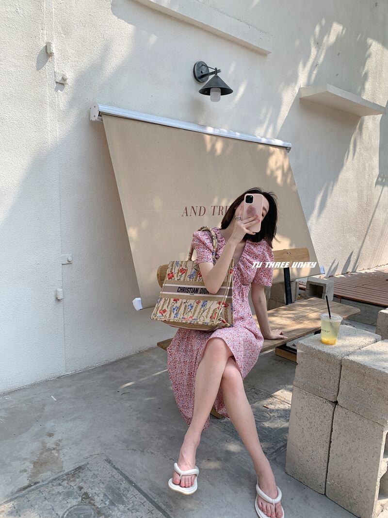 Vネックフローラルスカート サマースタイル薄手ドレス 夏物 花柄 ビッグFスモールZ韓国6482199275
