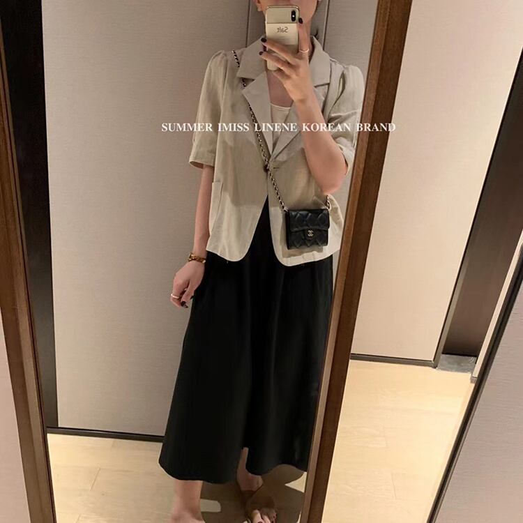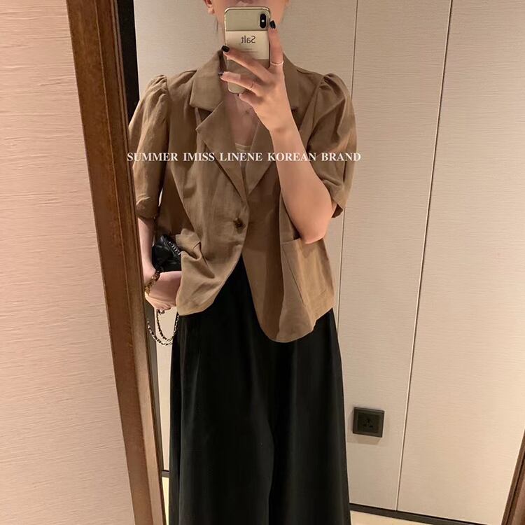 カラーショートジャケット サマーポケットソリッド スリーブトップス 夏物 ソリッドカラー ビッグFスモールZ韓国5129468726