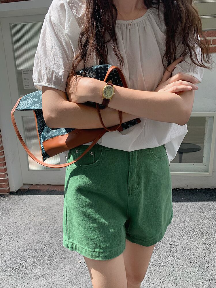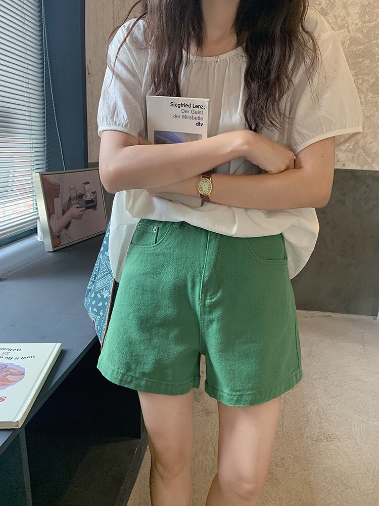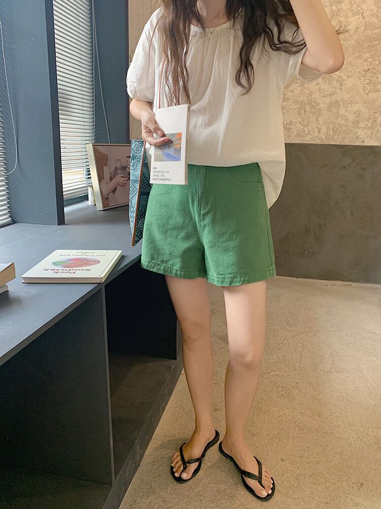 ウェスト薄手パンツ サマーポケットルーズグリーンショーツ 夏物 ブルマー ビッグFスモールZ韓国66545886091