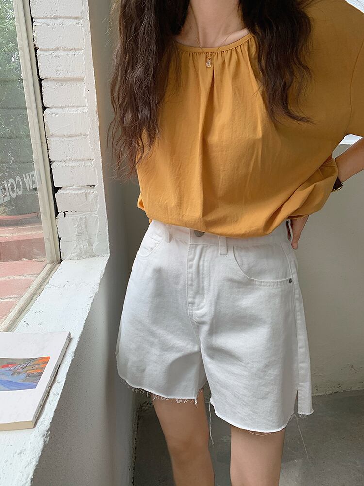 ジーンズ レディースサマーホワイトルーズショーツ 夏物 ブルマー ビッグFスモールZ韓国37437453596