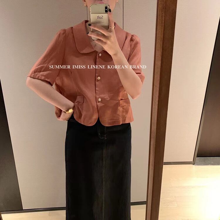 カラーパールボタンシャツ サマースタイルスリーブソリッド ポケットルーズ半袖トップス ショート ハーフスリーブ 夏物 真珠 ソリッドカラー ビッグFスモールZ韓国71715935893