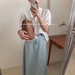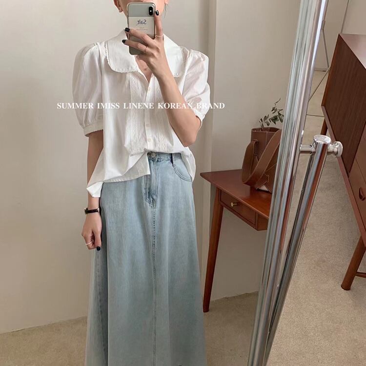 スリーブカラーシャツ サマーレースソリッド 半袖トップス ショート ハーフスリーブ 夏物 ソリッドカラー ビッグFスモールZ韓国49529889678