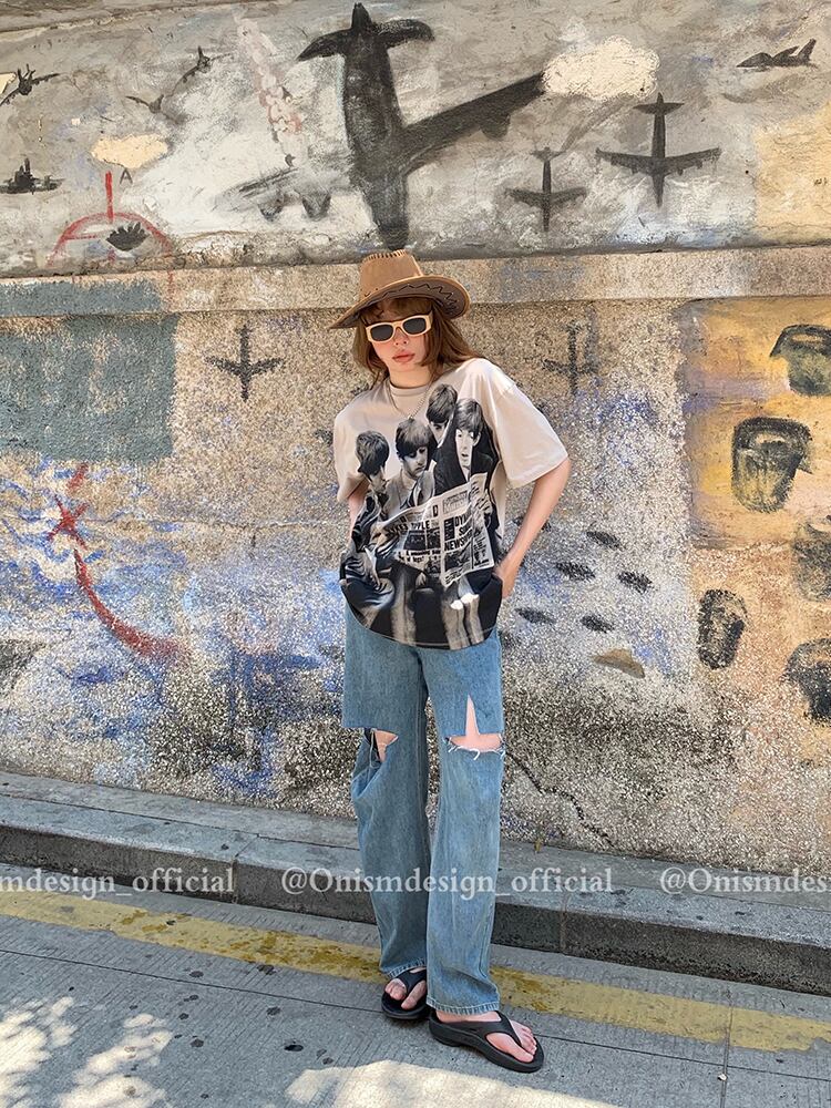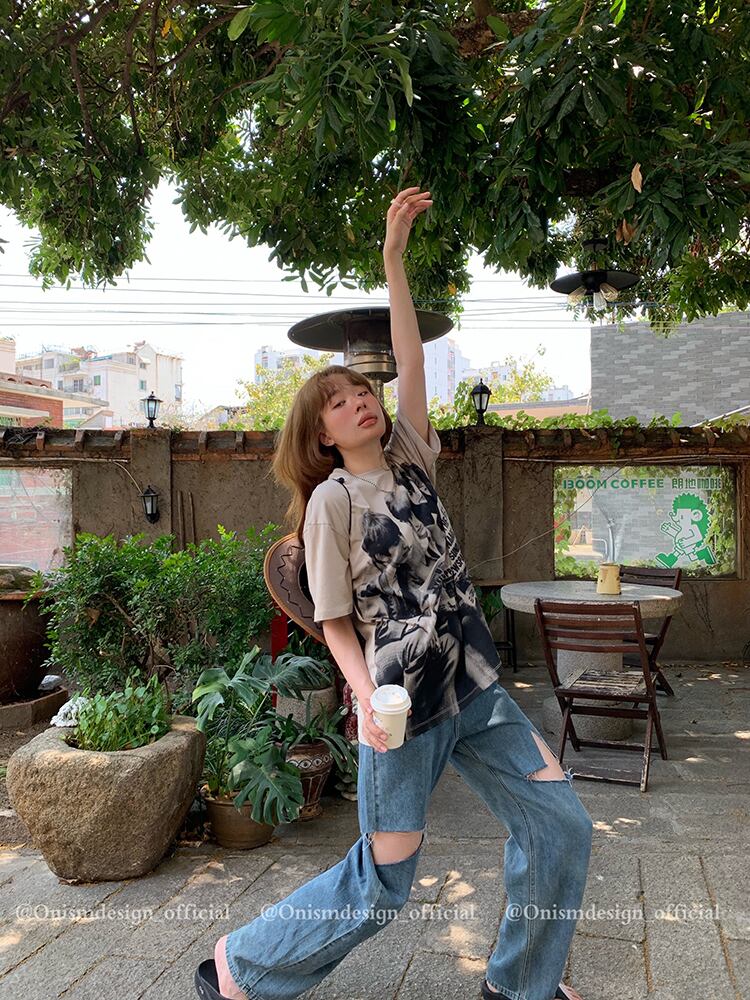 プリントTシャツ サマーラウンドネック薄手 夏物 Oネック ビッグFスモールZ韓国11147575593
