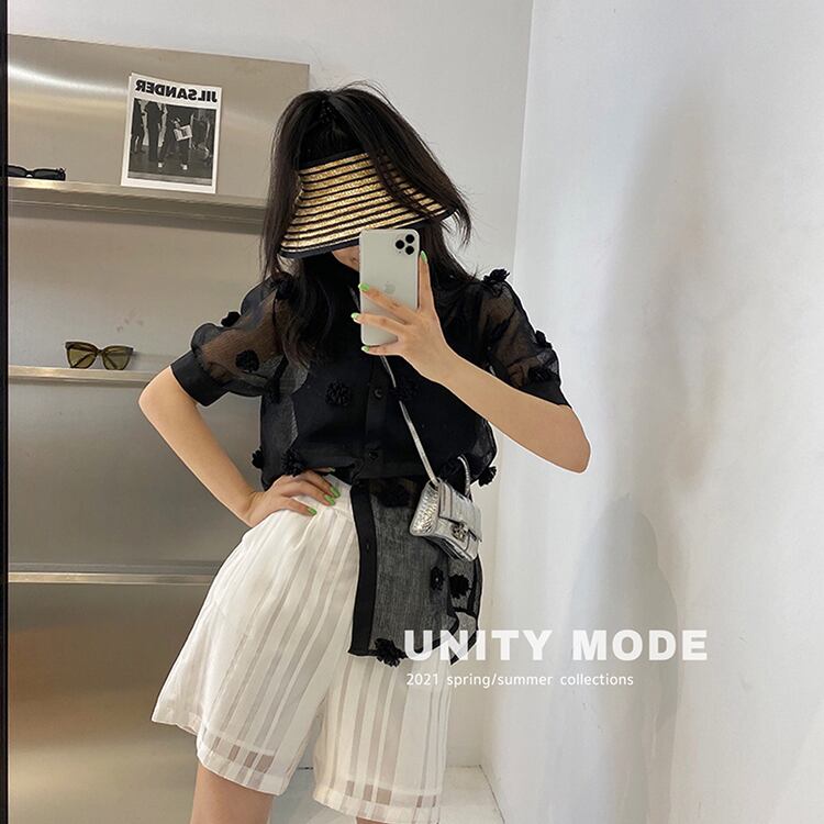 パンツ サマーカジュアルソリッド カラージャカードストライプストレッチウェストハイウェストショーツ エラスティック 伸縮 夏物 ブルマー ソリッドカラー ビッグFスモールZ韓国3841458869