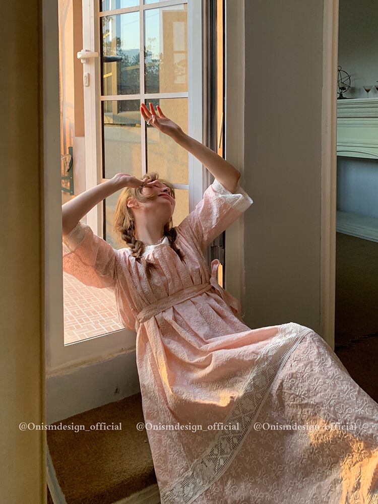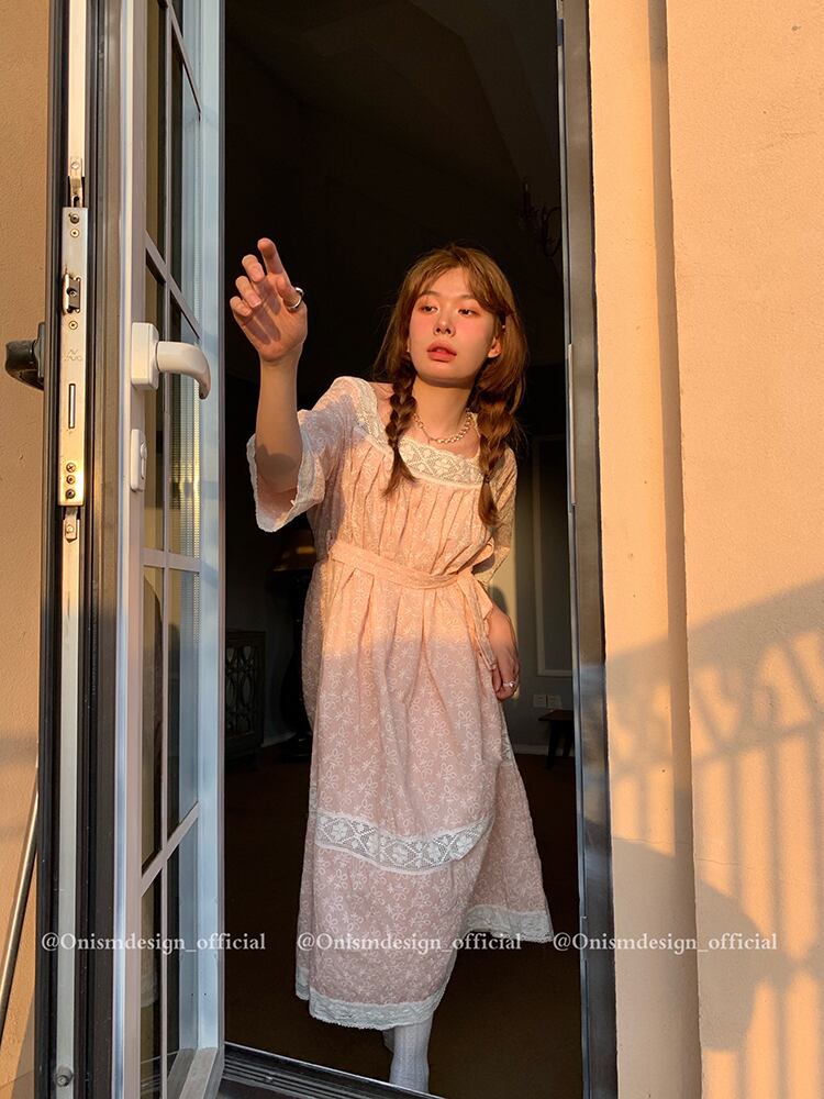 レースFlowerデザイン ドレス サマースタイルウェストAラインロングスカート レッド 刺繍 大人ガーリー スウィート キュート カジュアル 夏物 フラワーデザイン スクウェア ビッグFスモールZ韓国64647563620