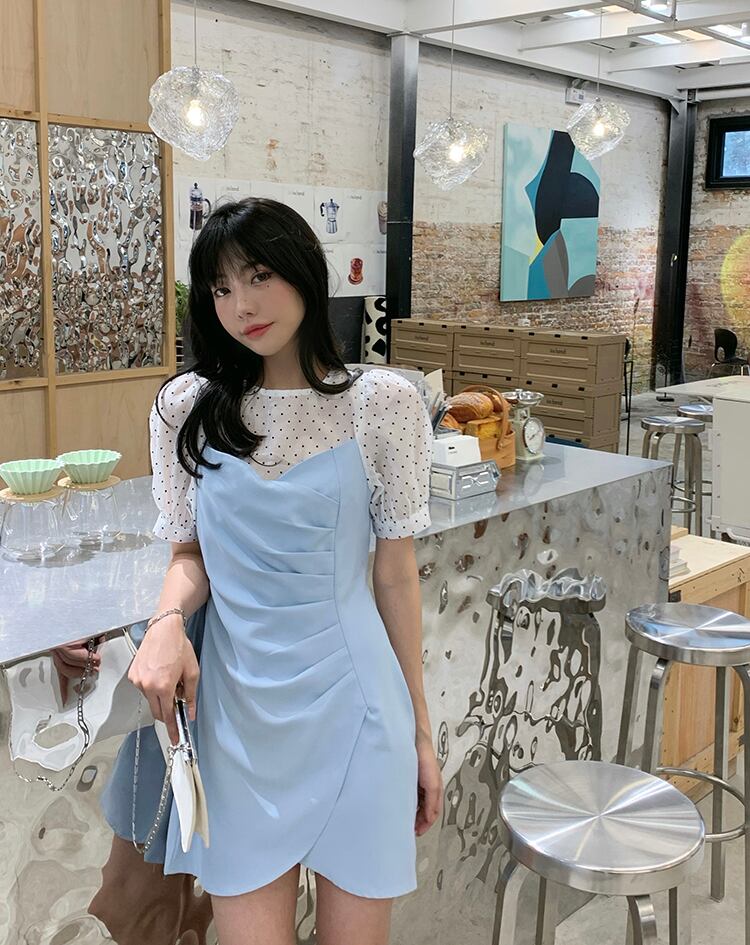 スリーブドレス サマーAラインハイウェストウェスト薄手スカート 大人ガーリー スウィート キュート カジュアル 夏物 ステッチ ビッグFスモールZ韓国58927863593