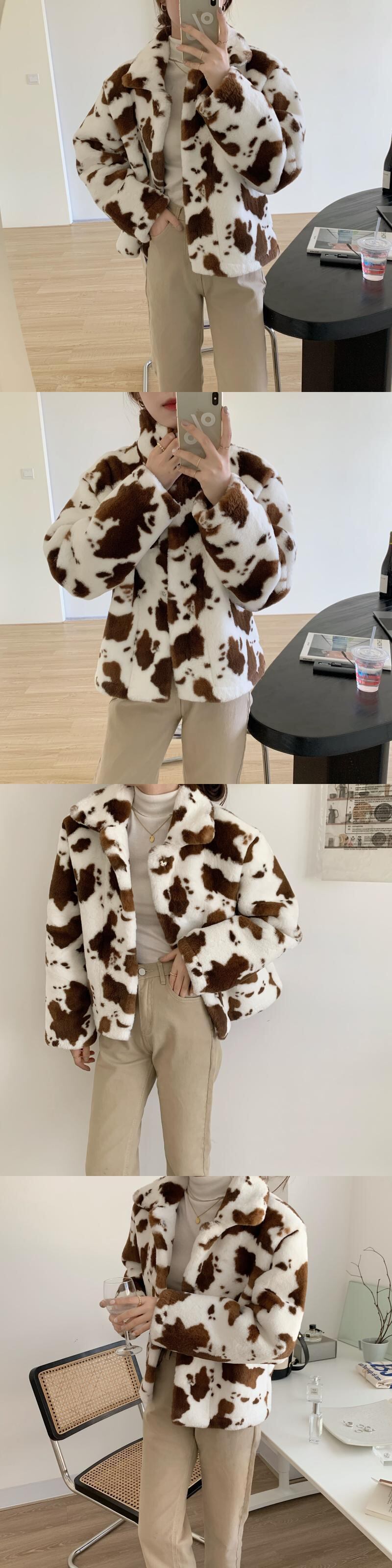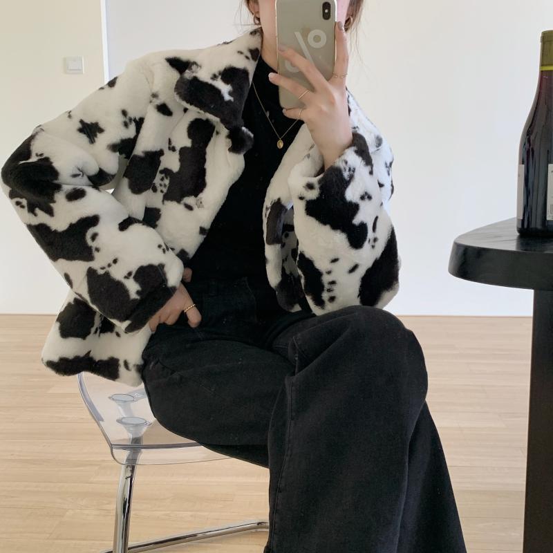 ファーコート パターンスタンドカラーカラーショートトップス レディース ビッグFスモールZ韓国3306743022