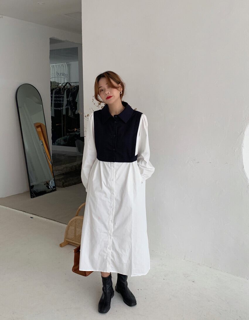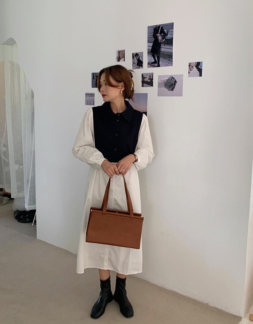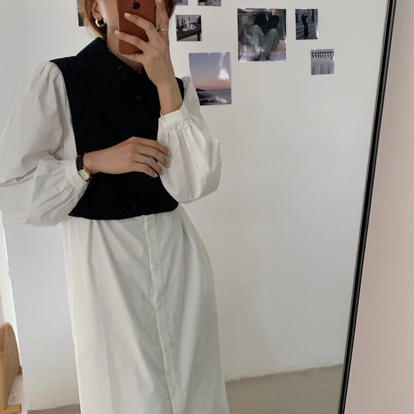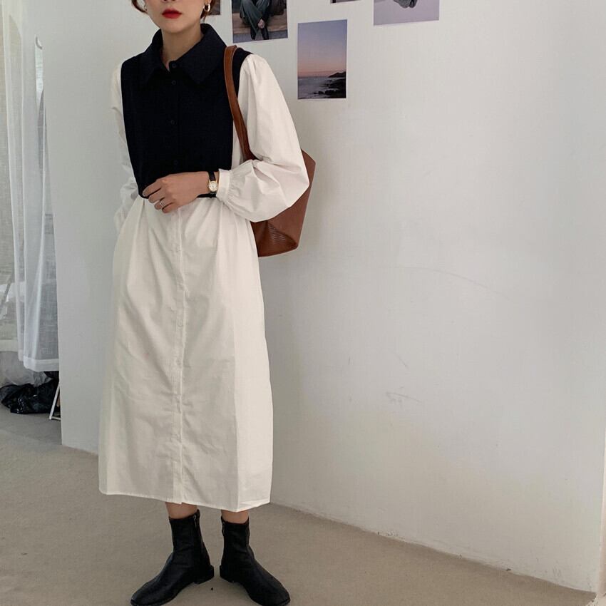シャツ ドレス ルーズロングスカート レディース ステッチ ビッグFスモールZ韓国67975669737