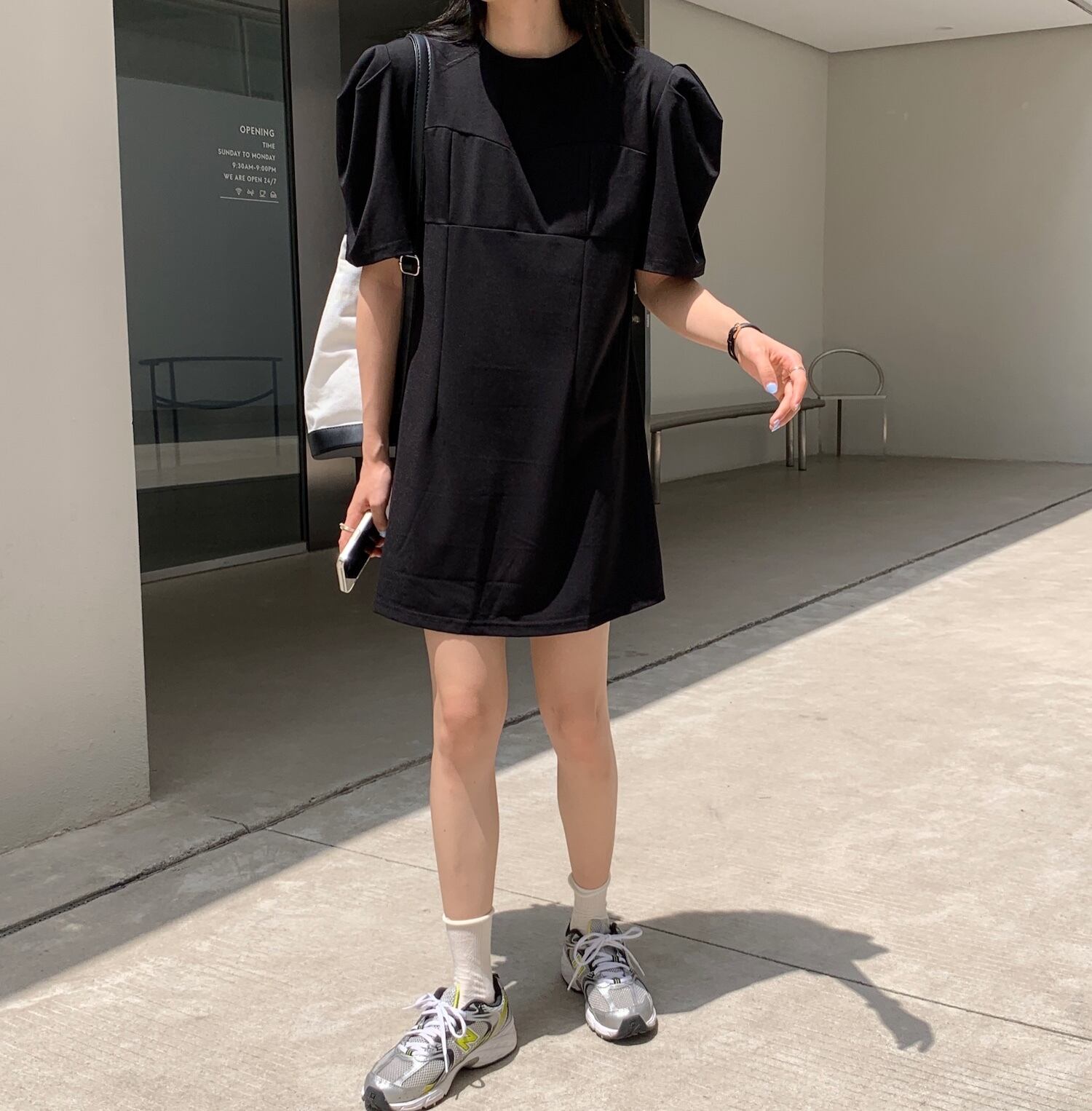 ショートドレス サマールーズ薄手スリーブラウンドネックAラインスカート 夏物 Oネック ビッグFスモールZ韓国40609178618
