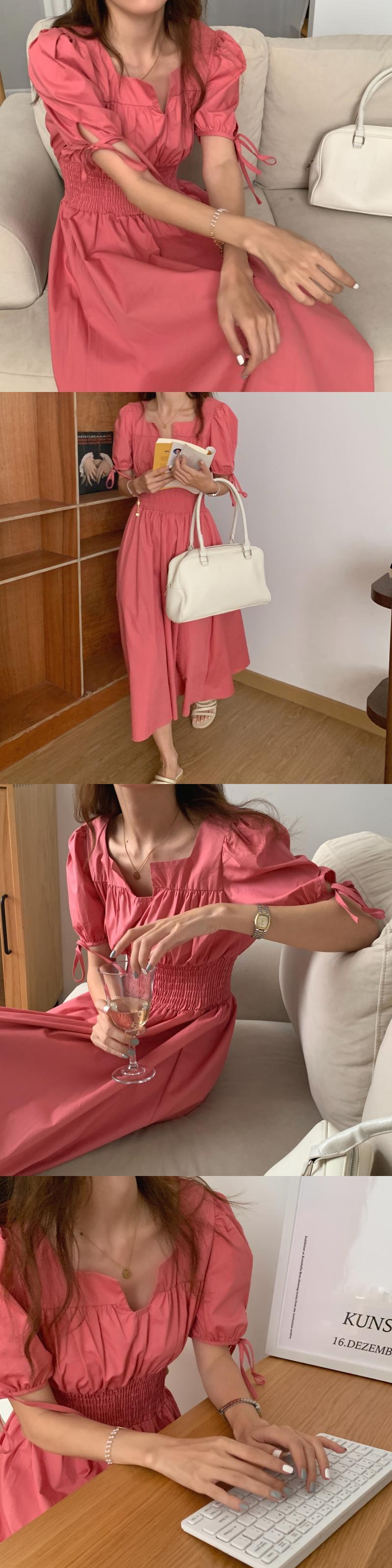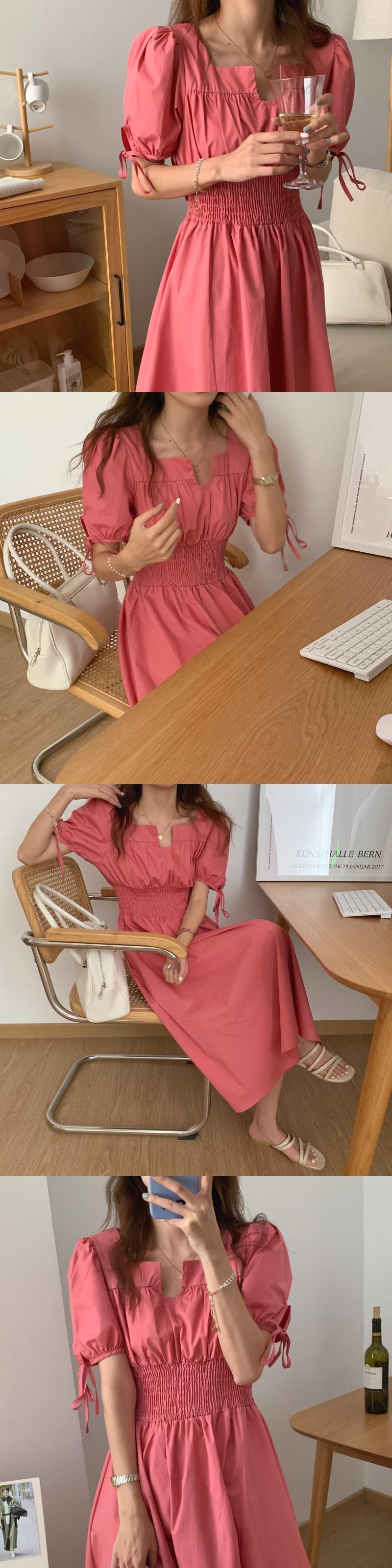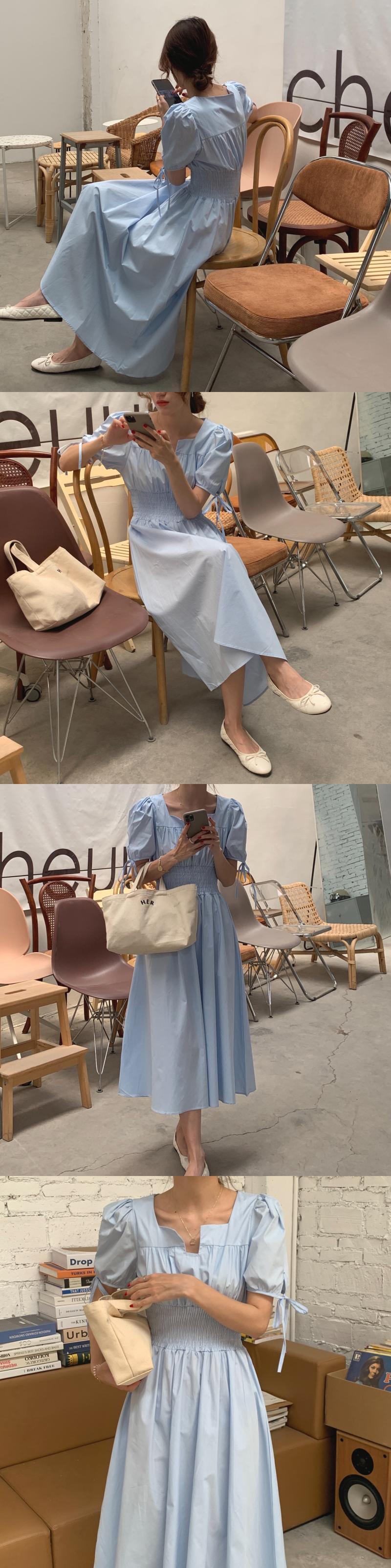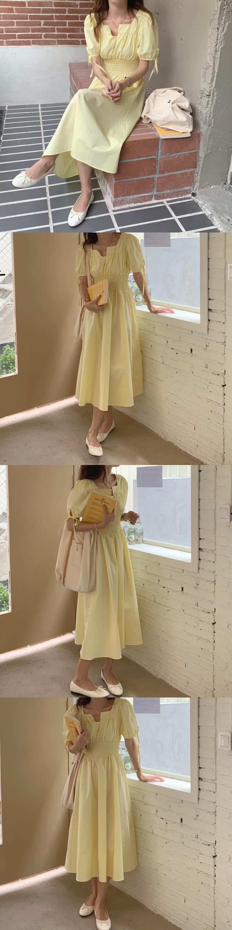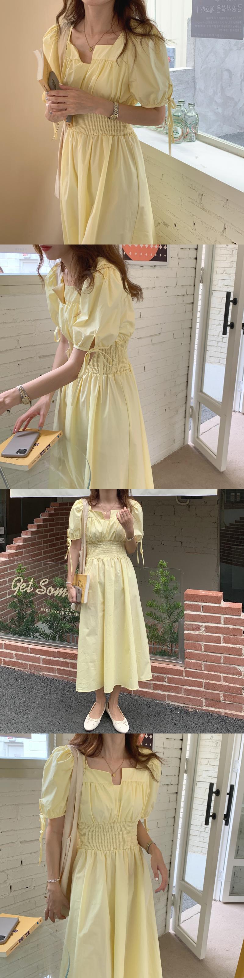 バンドスリーブドレス サマーストレッチウェストカラー エラスティック 伸縮 夏物 スクウェア ビッグFスモールZ韓国86439501894