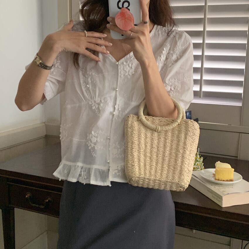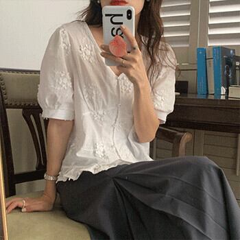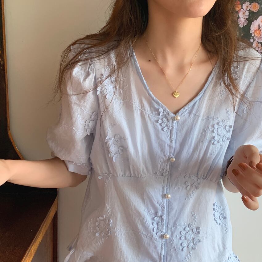 サイドブラウス サマースタイル薄手スリーブVネック 夏物 ビッグFスモールZ韓国30920331580