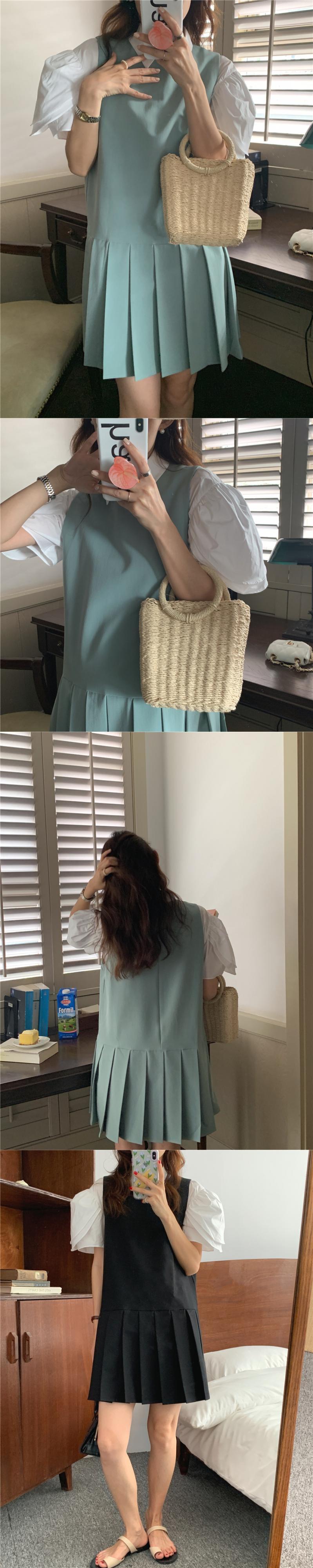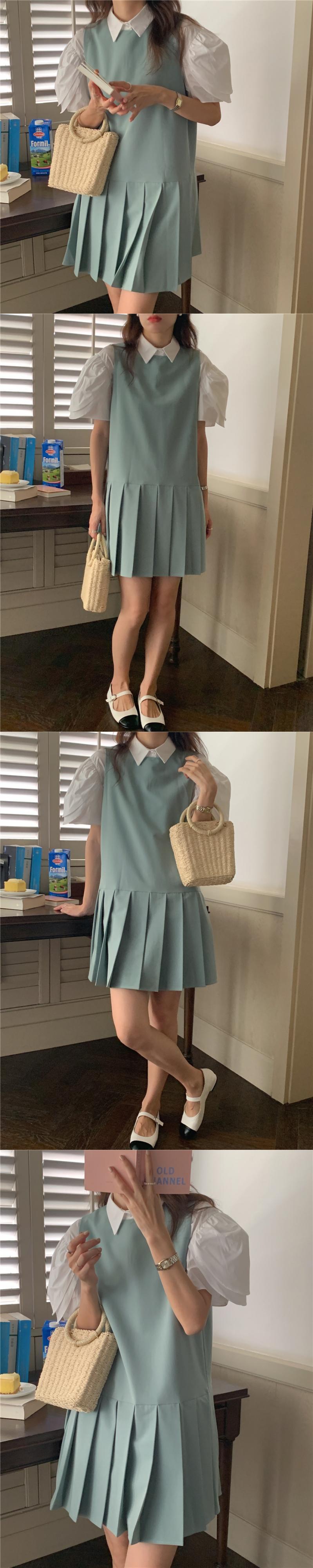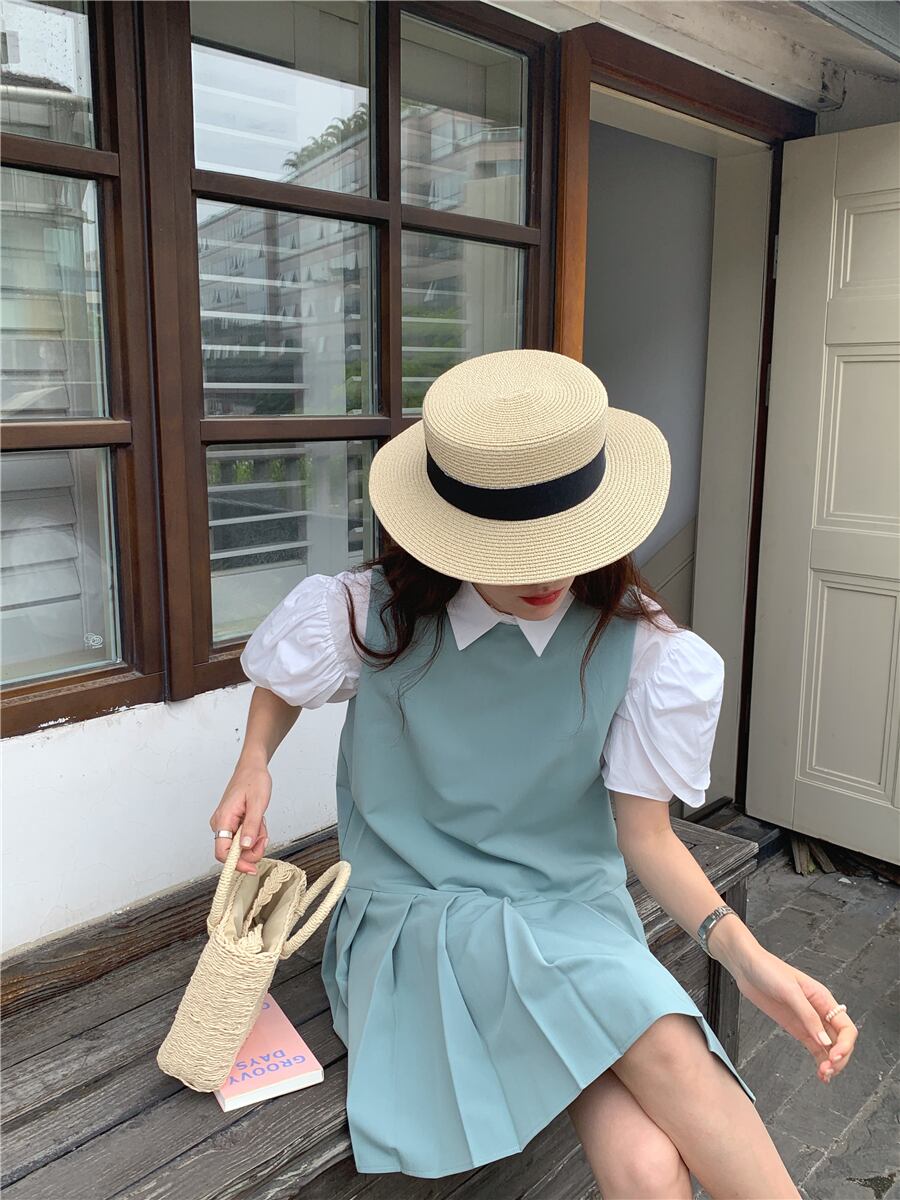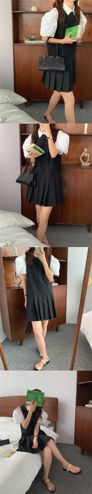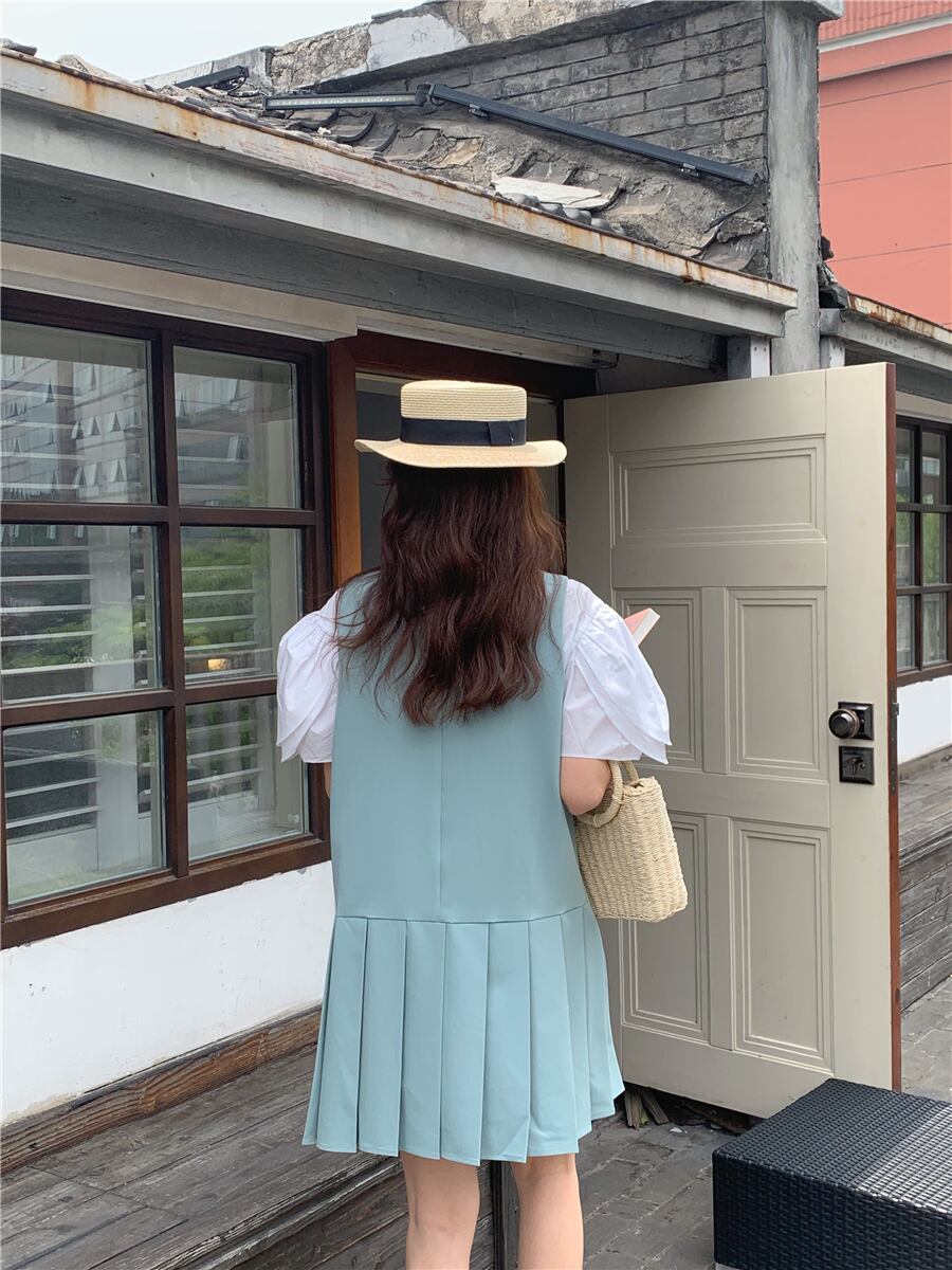 ソリッド カラーシャツ サマースタイルプリーツスカート 夏物 ソリッドカラー ビッグFスモールZ韓国28139319631