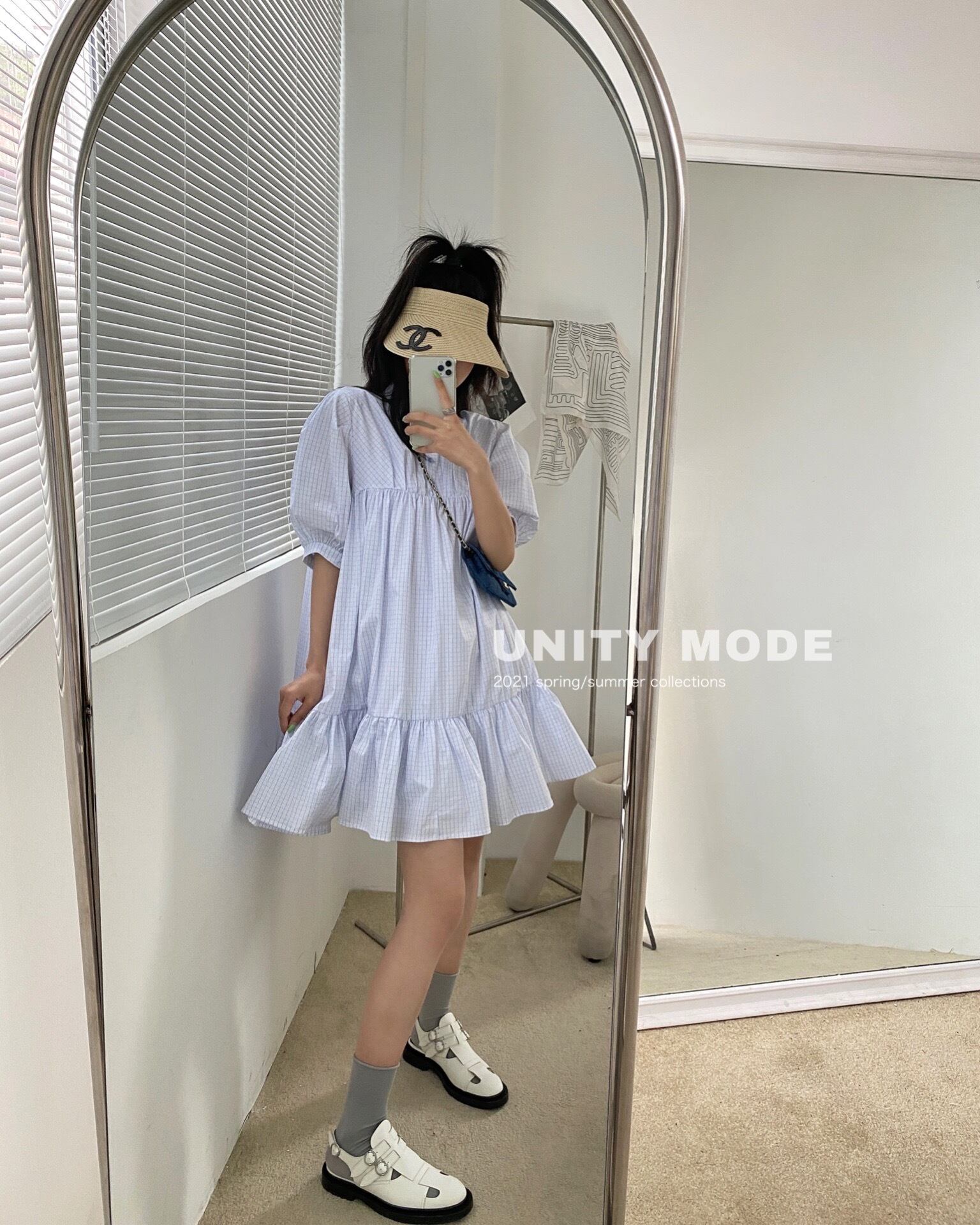 スカート ドレス サマールーズプリーツスリーブAライン 夏物 ビッグFスモールZ韓国54887594804