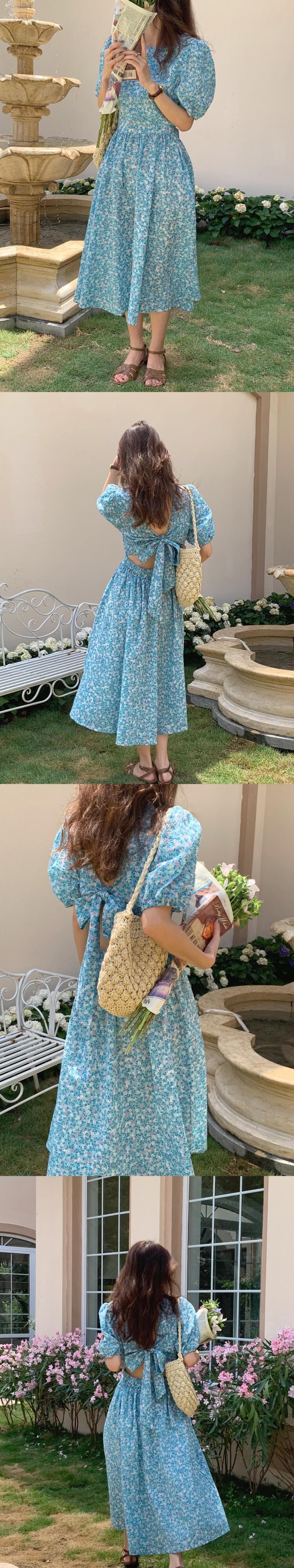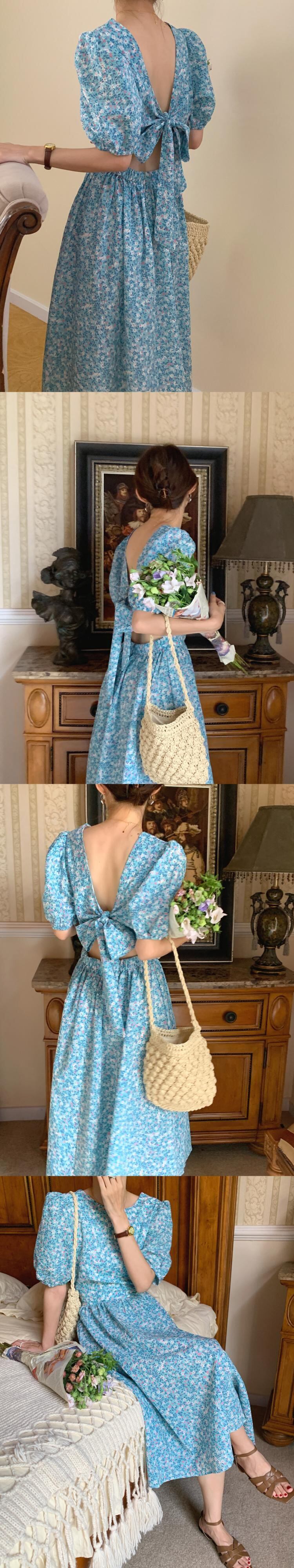 フローラルリボンホルタードレス サマーラウンドネック半袖スリーブハイウェストウェスト ショート ハーフスリーブ 夏物 花柄 Oネック ビッグFスモールZ韓国72469967007