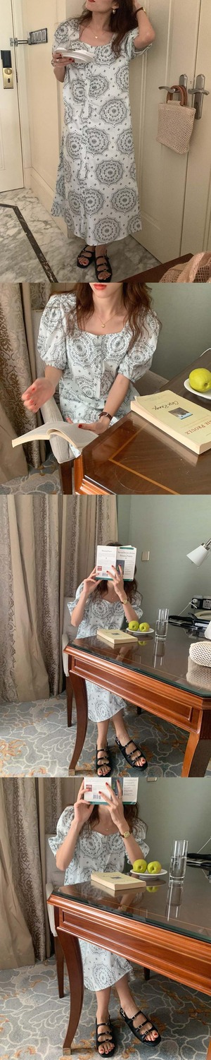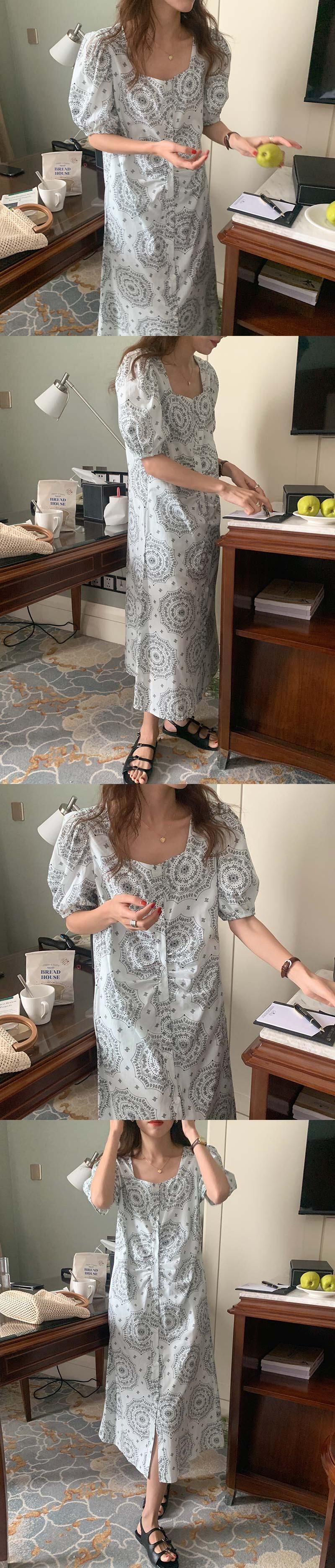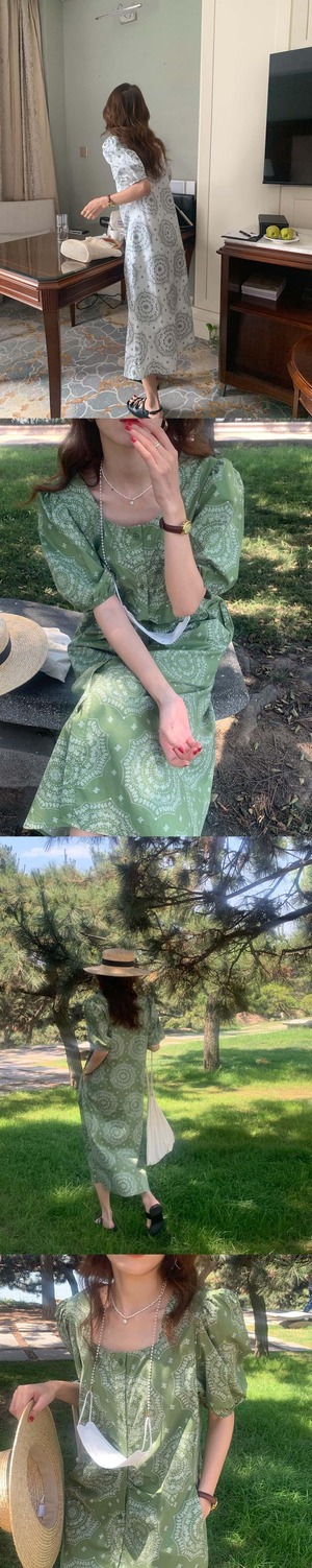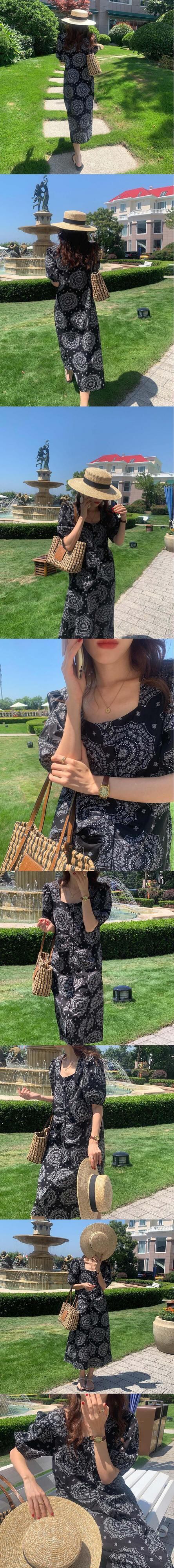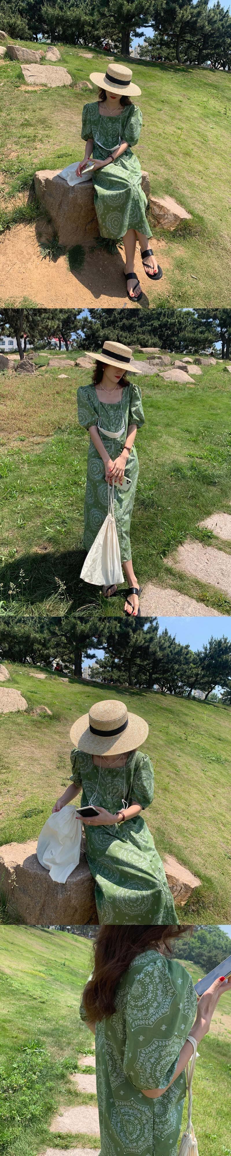 プリントスリーブドレス サマースタイルプリーツスカート 夏物 ビッグFスモールZ韓国77777733610