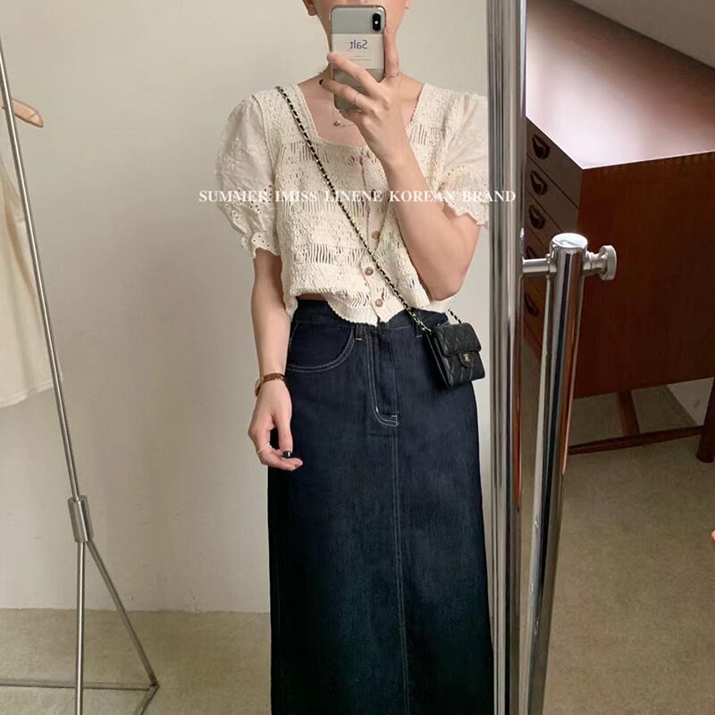 トップス サマースタンダードショートスリーブカラーカーディガン レトロ 夏物 スクウェア ビッグFスモールZ韓国92719171452