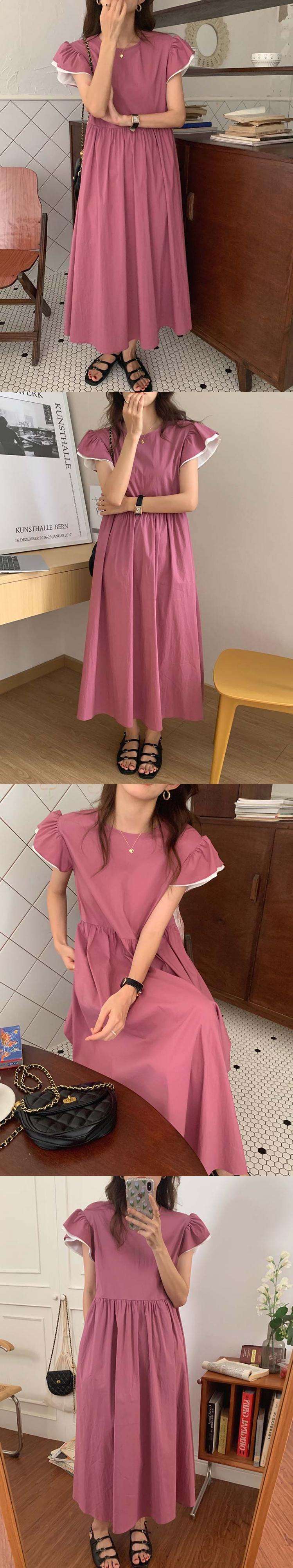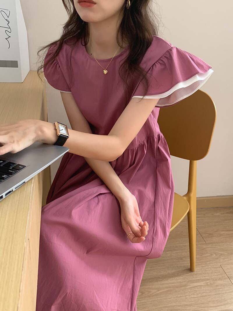 スリーブドレス サマースリムラウンドネック半袖 ショート ピンク ハーフスリーブ 夏物 Oネック ビッグFスモールZ韓国55620677219