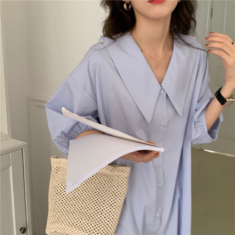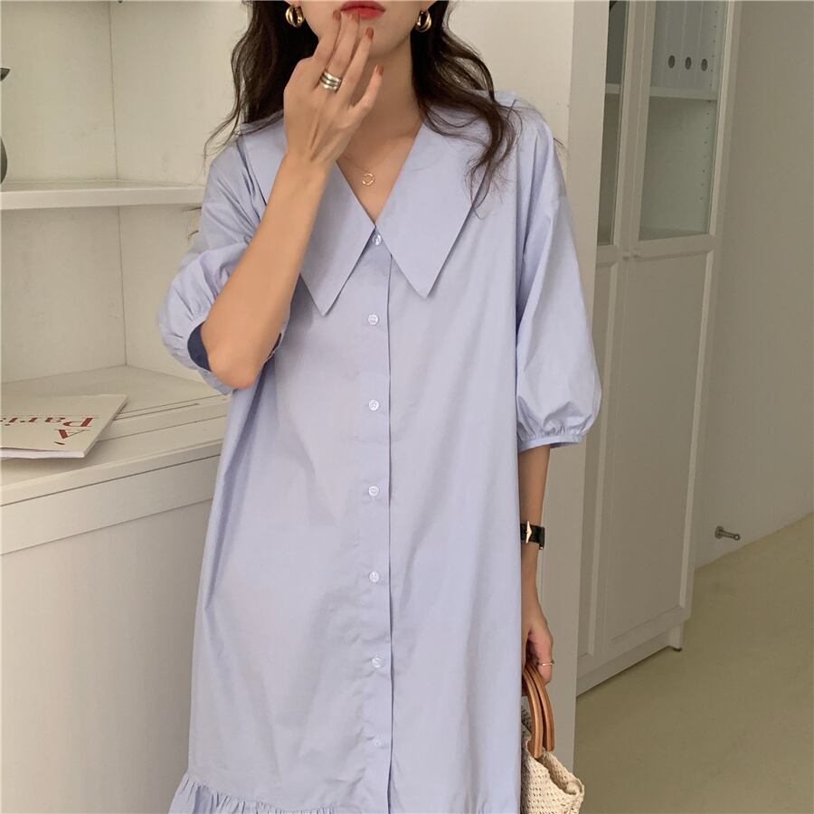 ソリッド カラードレス サマースリーブ薄手スカート ランタンスリーブ 大人ガーリー スウィート キュート カジュアル 夏物 ソリッドカラー ステッチ ビッグFスモールZ韓国9222248422