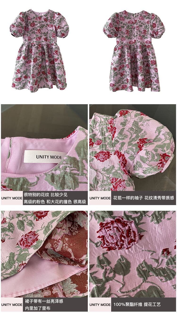 ジャカードスカート サマーハイウェストウェストルーズ薄手ラウンドネックスリーブドレス ランタンスリーブ 夏物 Oネック ビッグFスモールZ韓国38480653587