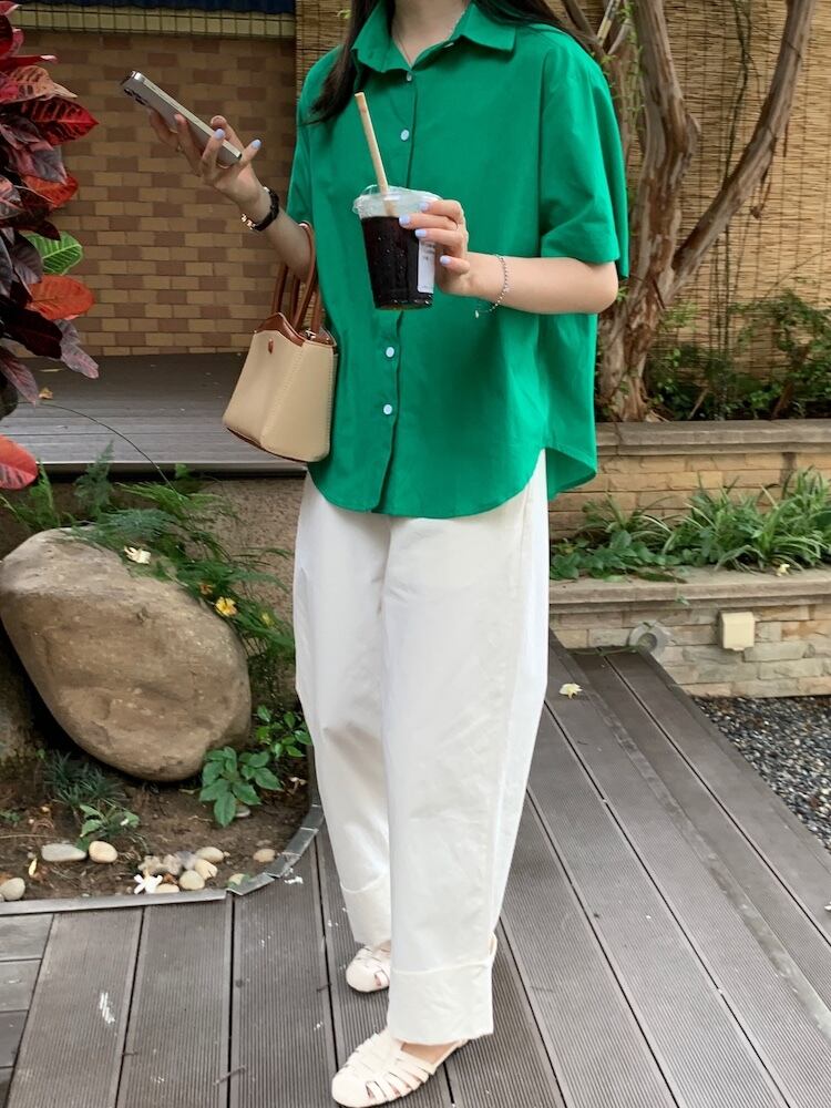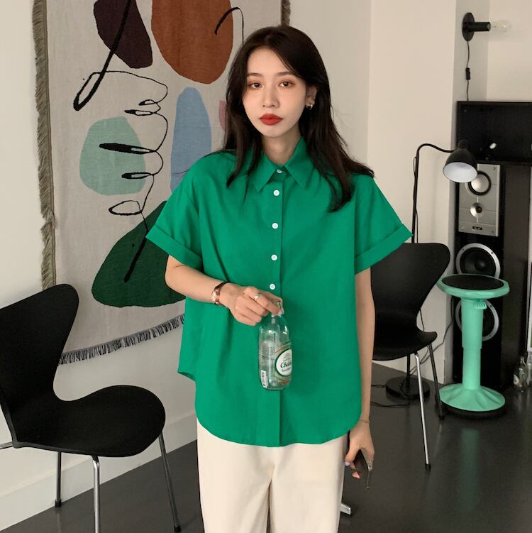 グリーンスリーブシャツ サマーカジュアルルーズ薄手 夏物 ビッグFスモールZ韓国28989038136