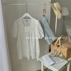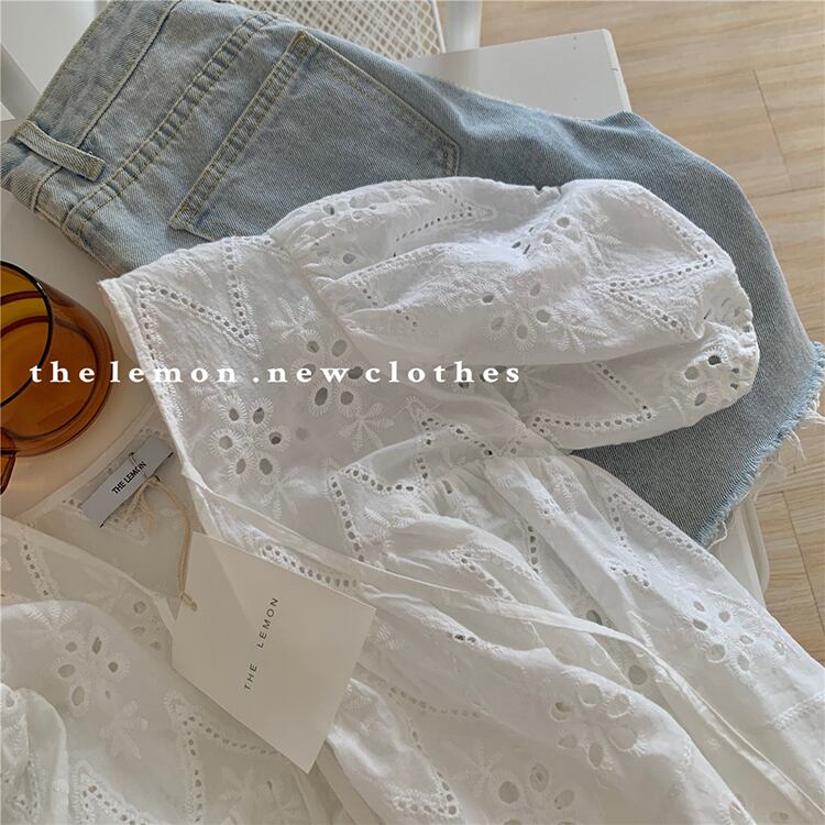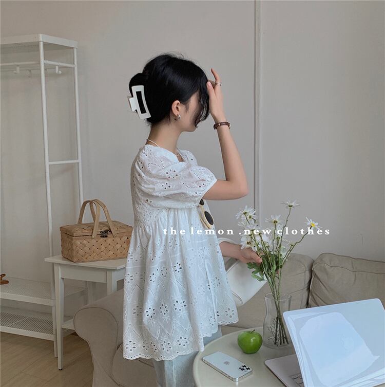 チェーン Flowerデザイン 薄手Vネックシャツ サマースタイルスリーブレースソリッド カラートップス 夏物 ソリッドカラー フラワーデザイン ビッグFスモールZ韓国82509833898
