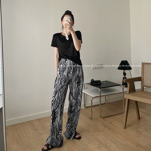 プリーツカラースリットパンツ ハイウェストルーズカジュアルレディース ビッグFスモールZ韓国96163729282