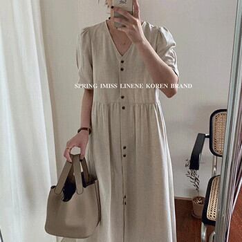 ドレス サマーカジュアルVネックルーズハイウェストブルーAラインロングスカート 夏物 ビッグFスモールZ韓国14140593300