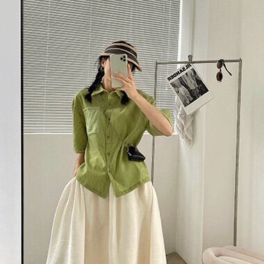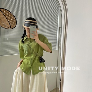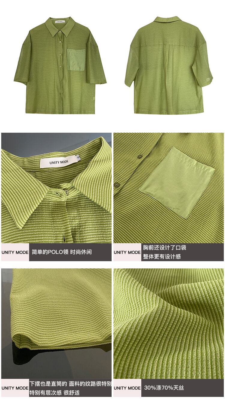 カラーシャツ ジャケット レディースサマーストライプスリーブ 夏物 ビッグFスモールZ韓国71549373653