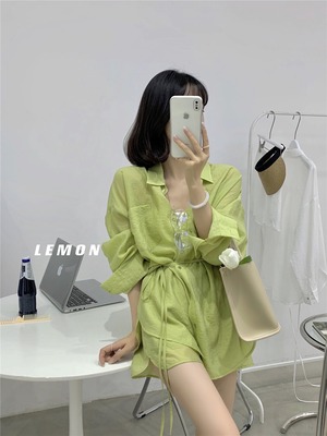 薄手カジュアルショーツ カラーシャツ サマープリーツ ロング 夏物 ブルマー ビッグFスモールZ韓国12639723202