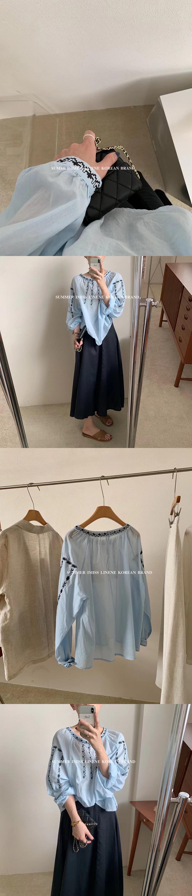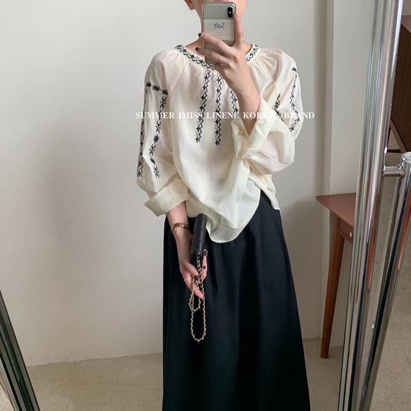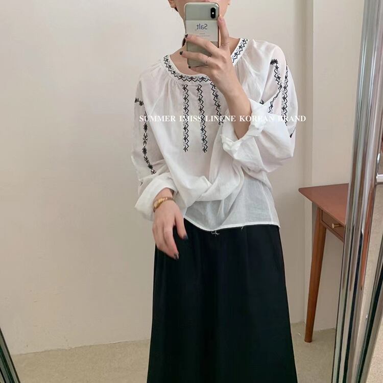 刺繍ラウンドネックショートシャツ サマー薄手 ロング 夏物 Oネック ビッグFスモールZ韓国65380417038