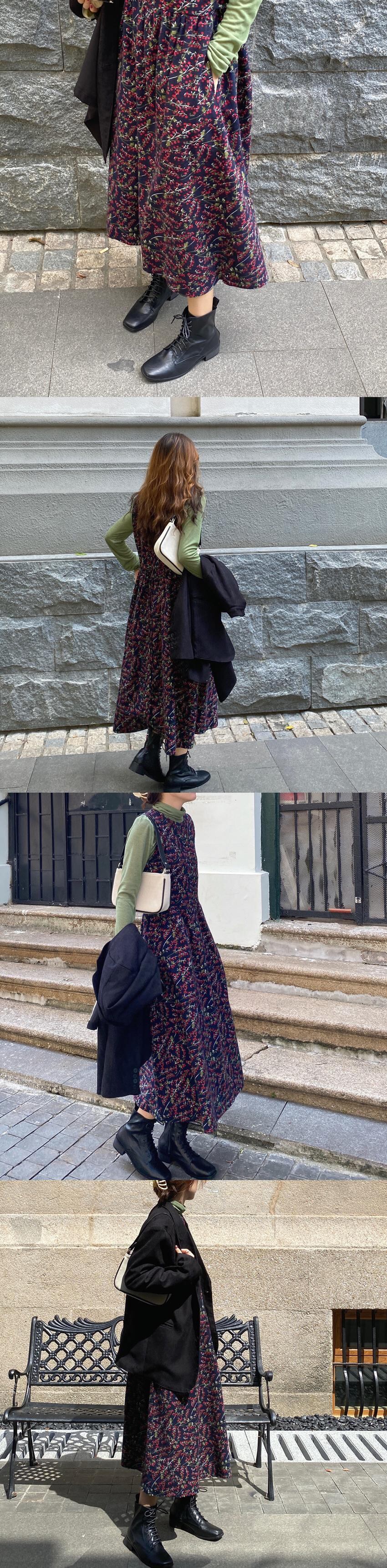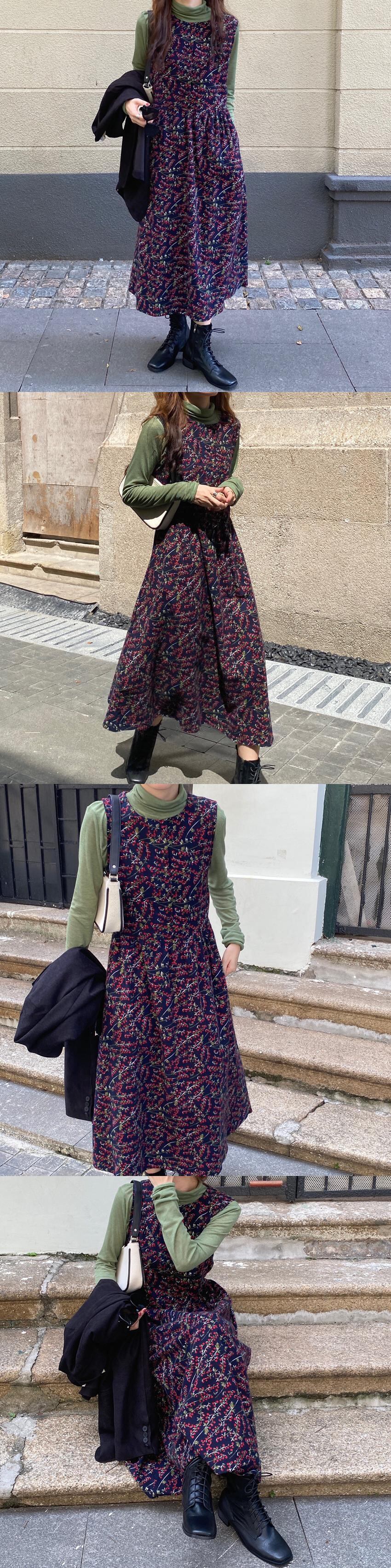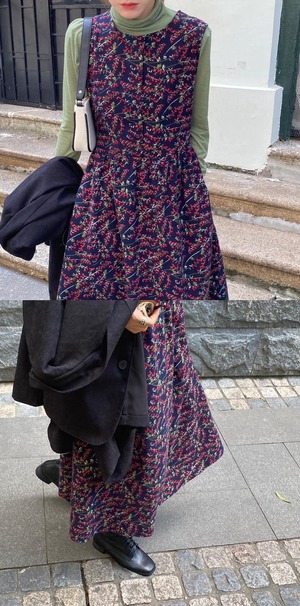 スタンダードTシャツ トップス ラウンドネックノースリーブフローラルスカート ロング レトロ 花柄 Oネック ビッグFスモールZ韓国9030810516
