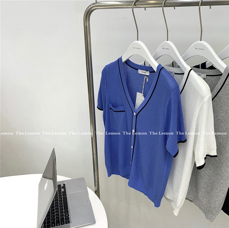 カラーVネック薄手ウールニットセーター レディースサマーカーディガントップス 夏物 ビッグFスモールZ韓国24963645629
