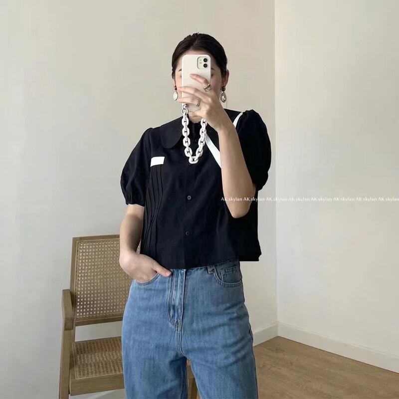 カラーレースショートシャツ サマー薄手半袖スリーブトップス ハーフスリーブ 夏物 ビッグFスモールZ韓国82110110318
