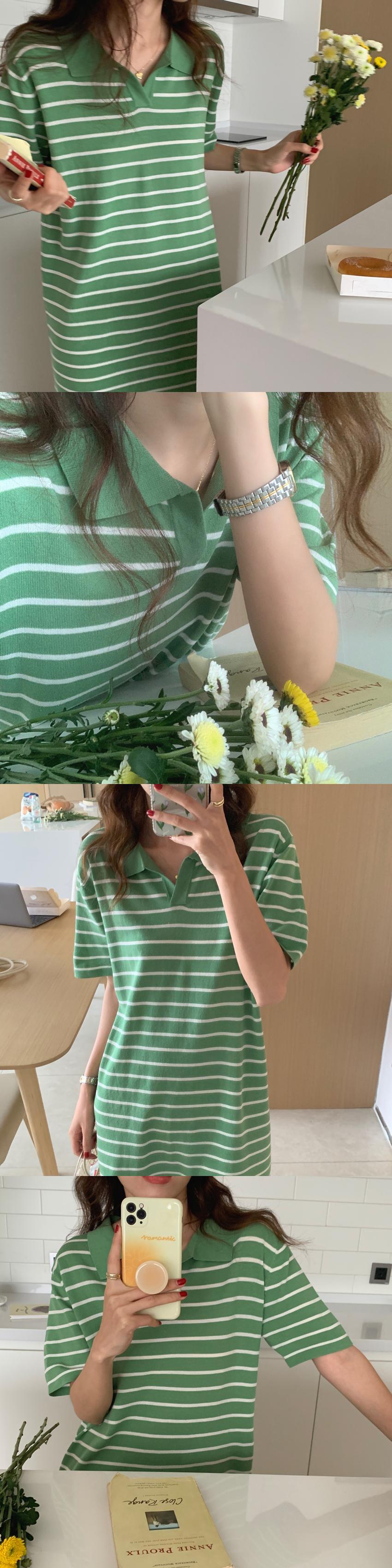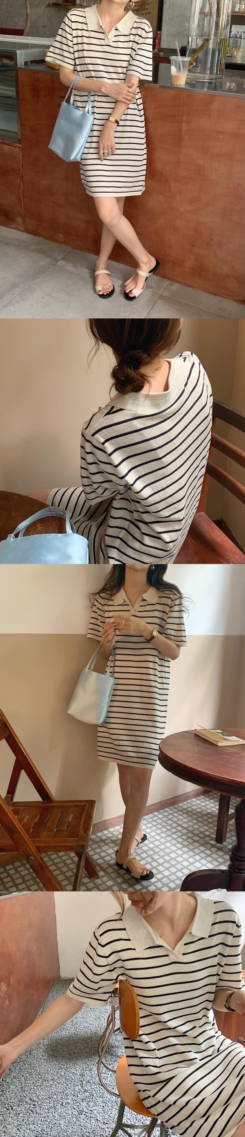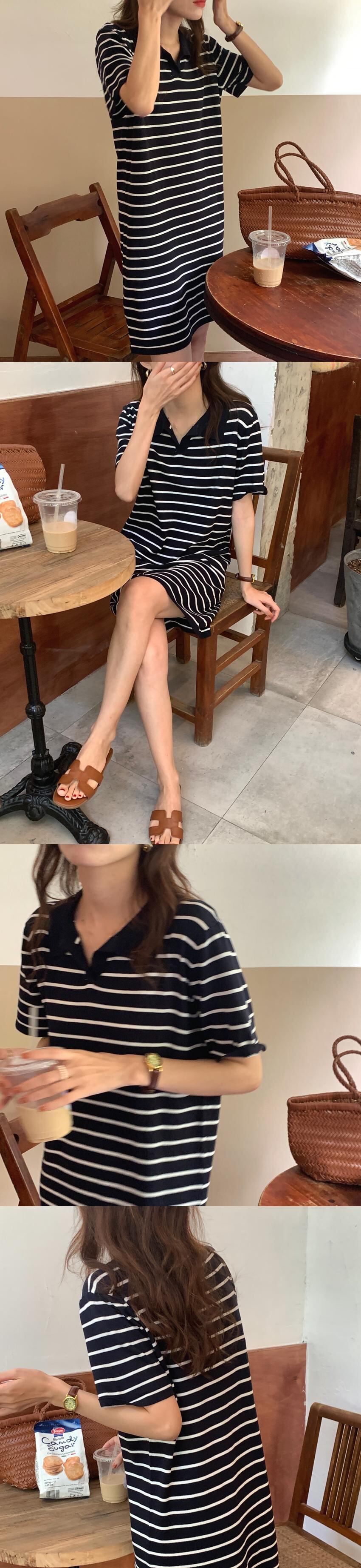 ストライプドレス レディースサマールーズロング半袖スリーブTシャツ ショート ハーフスリーブ 夏物 ビッグFスモールZ韓国63768810027