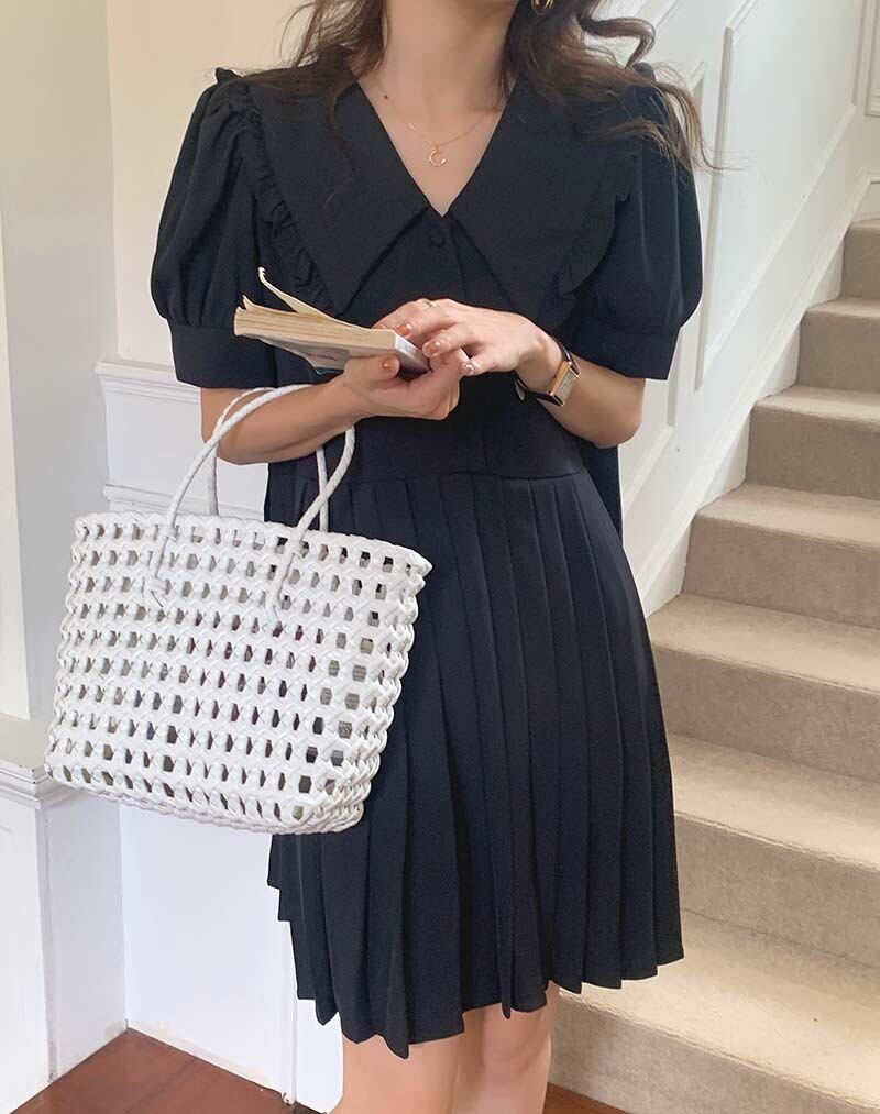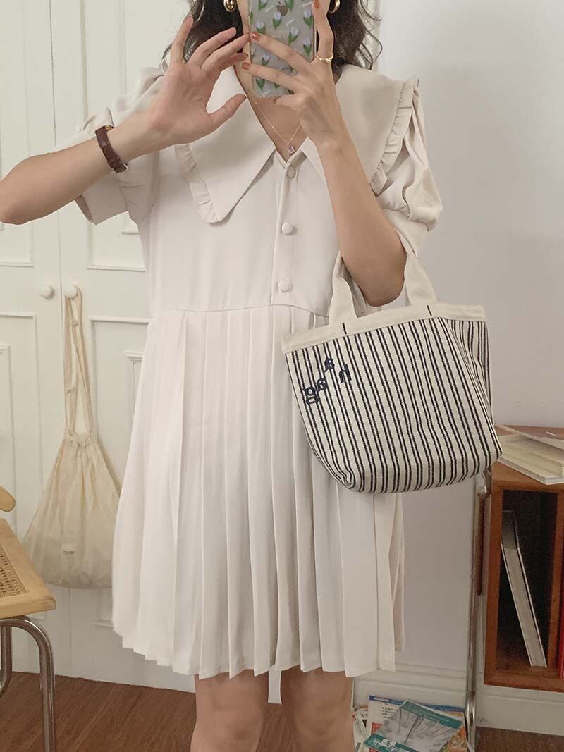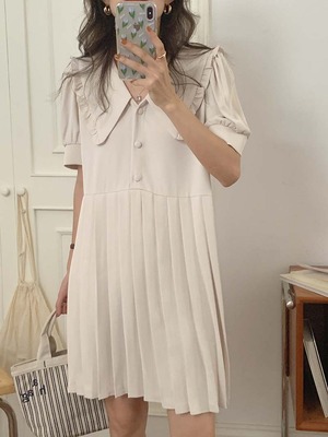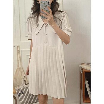ソリッド カラープリーツドレス サマーウェスト薄手スリーブAラインスカート 夏物 ソリッドカラー ビッグFスモールZ韓国29272962285